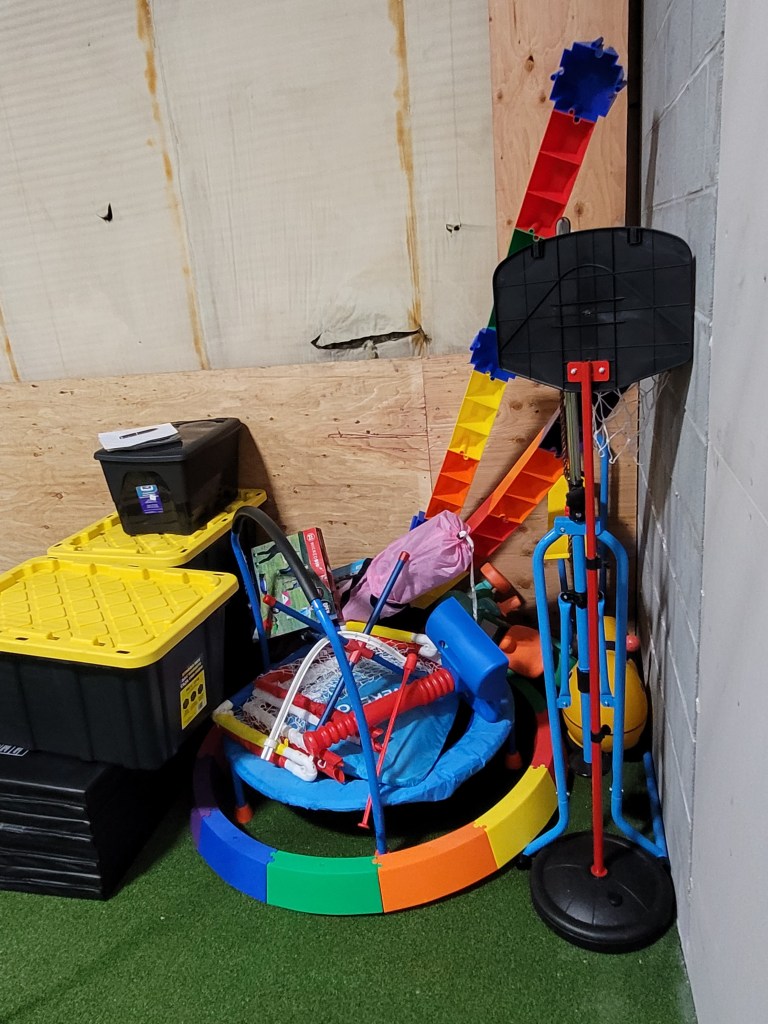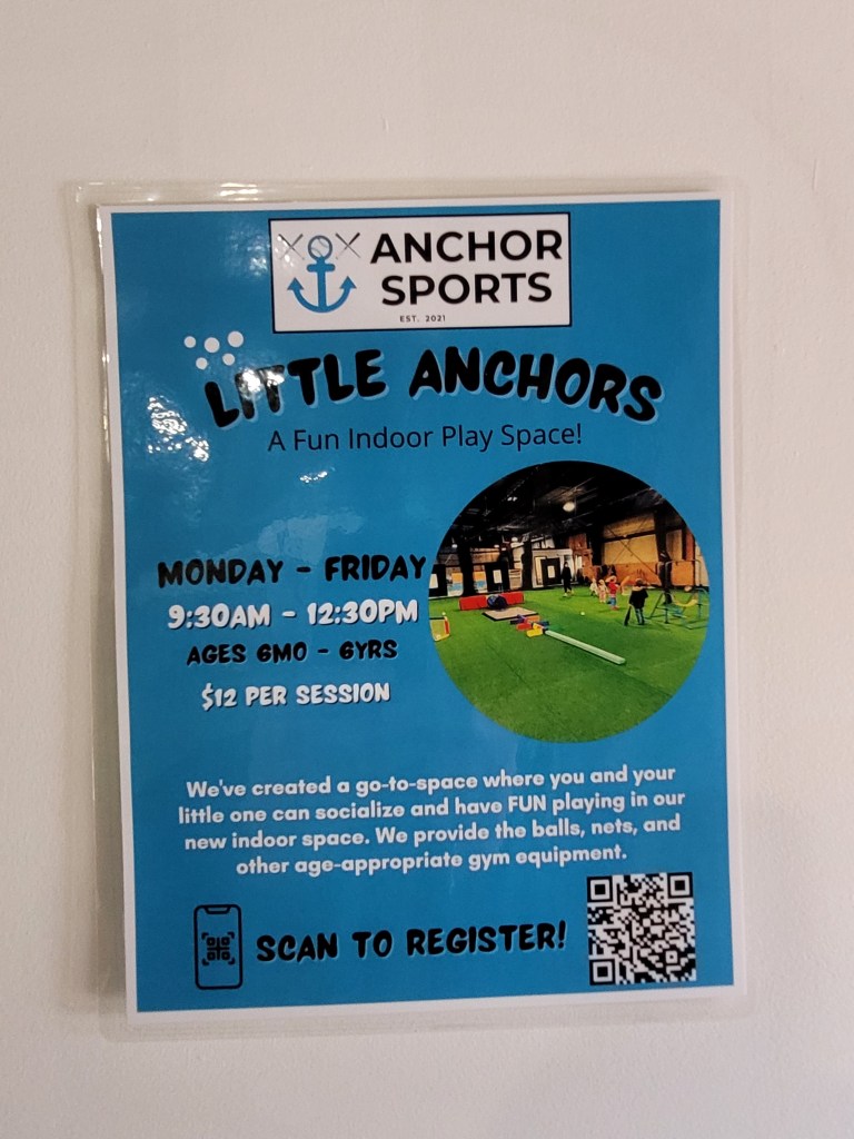 At the end of the walkway, Josh pointed to a section of pre-school play toys. “We are starting a pre-school fitness type class here for parents to come in and workout with their toddlers. We just pull back the netting and give them a big space to run around in.” Josh mentioned it was a pilot program that he hoped would turn into something more permanent in the weeks and months to follow. He called it “Little Anchors.”