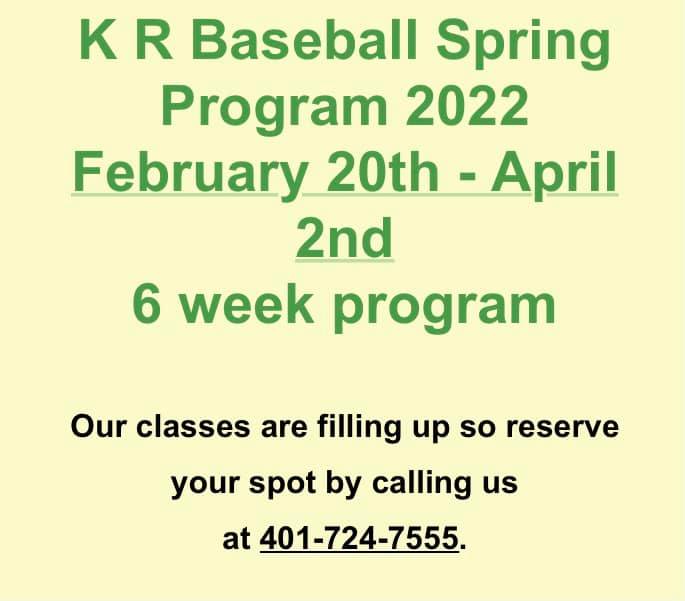 Upcoming KR Baseball Spring Program leading up to youth baseball, Middle School, and HS Spring Season.