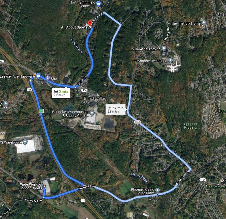 The hitting and bullpens portion of L&M Scouting Day will take place at 5:20 pm at All About Sports, 473 St. Paul St, also North Smithfield. All About Sports is about 5 minutes to drive and 57 minutes to walk from WWIS (not sure why my Google maps put the walking option in???). All joking aside, the two facilities are about 2 miles apart, so getting a chance to see the players workout defensively, then heading over to scout their hitting and pitching looks to be very convenient. See the map below for the two baseball sites for L&M Scouting Day.