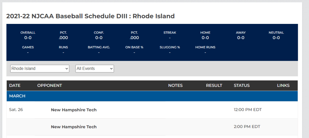 My Rhode Island Baseball Google Calendar of baseball games for Saturday March 26th is so full…”How full is it?” Well, I’m no comedian, so I have no punchline but I do have a fantastic list of local games you can check out. Tons of Rhode Island baseball talent on display today from Bristol to Providence to Narragansett to Chariho! Check out these snapshots of games scheduled to happen here in Rhode Island today: