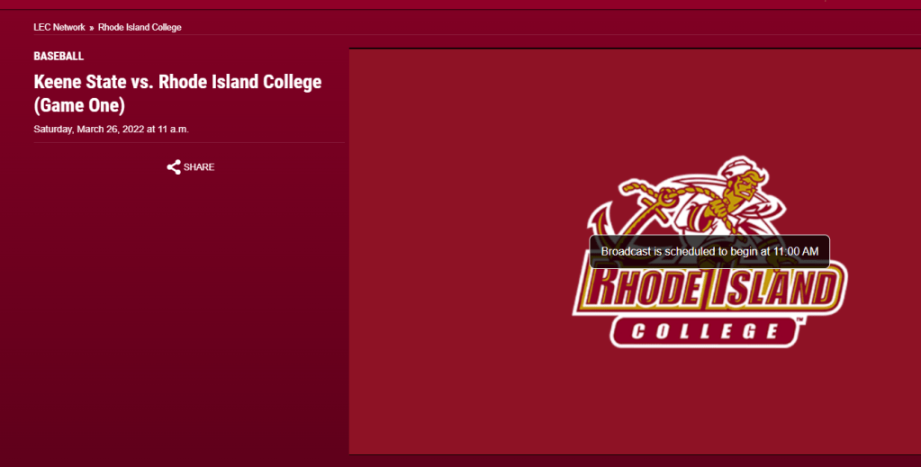 The 7-4 RIC Baseball club is home today for a doubleheader vs Keene State at Pontarelli Field, Rhode Island College. Head to RIC Baseball’s webpage to catch all the live stats, or head up to Rhode Island College to watch the games live. Game 1 is 11am; Game 2 is 2pm.