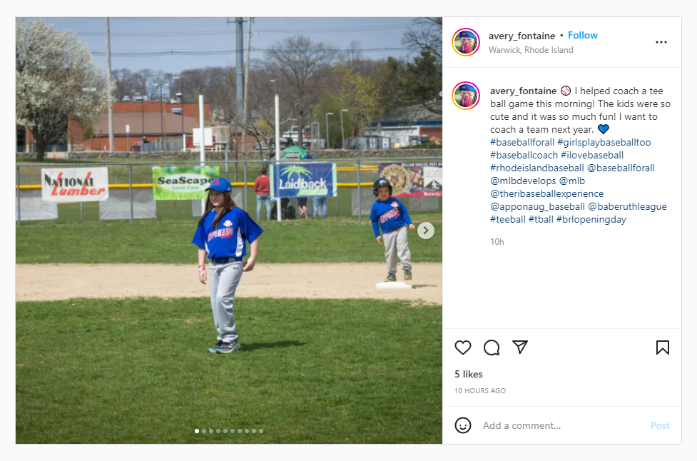 This one is from Avery Fontaine on Instagram. Thank you for including me in your baseball journey Avery, looks like you are a natural Coach!!!