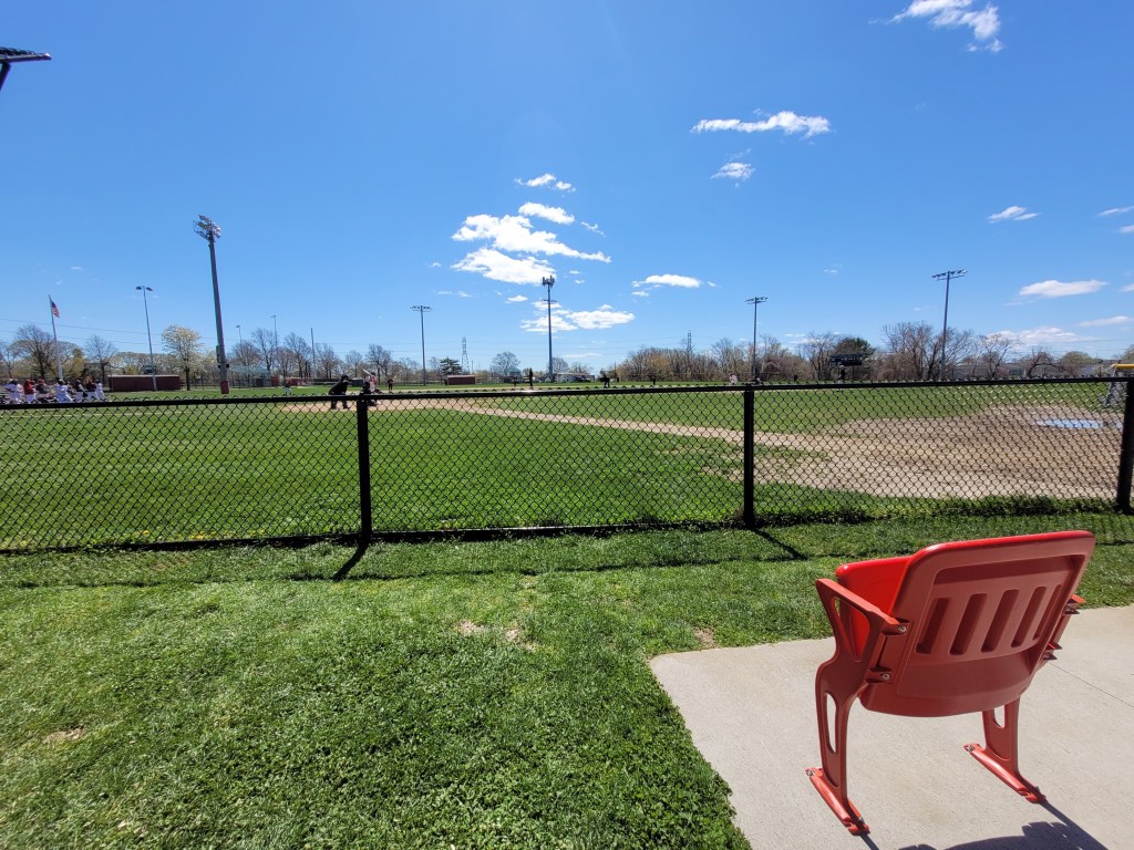 As my time was running out and I needed to start heading into work, I took a stroll over to the bleachers facing the football stadium and track. I have been in these bleachers a number of times for games at Pierce and love the view from that spot. I took this video in the farthest corner of the bleachers adjacent to the right field area of Pierce Memorial Field. As you can see from the video, the field is in really nice shape for April baseball!!!