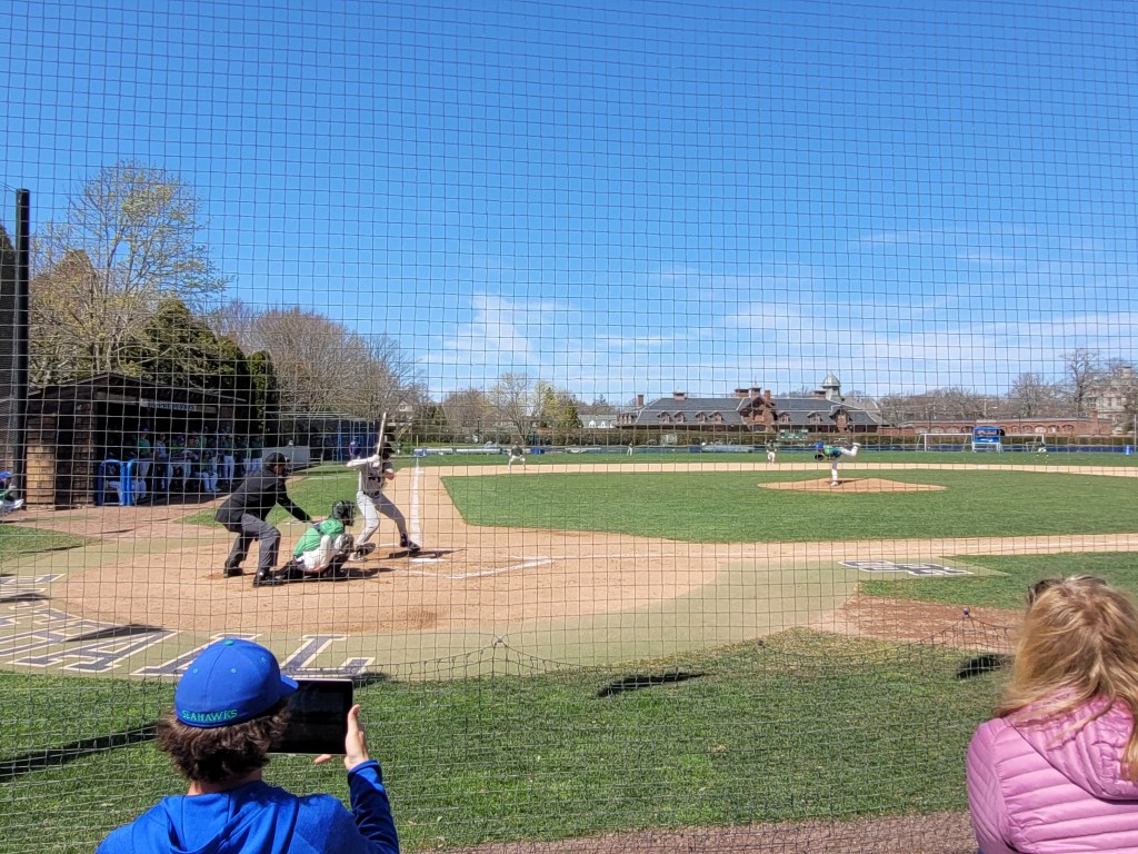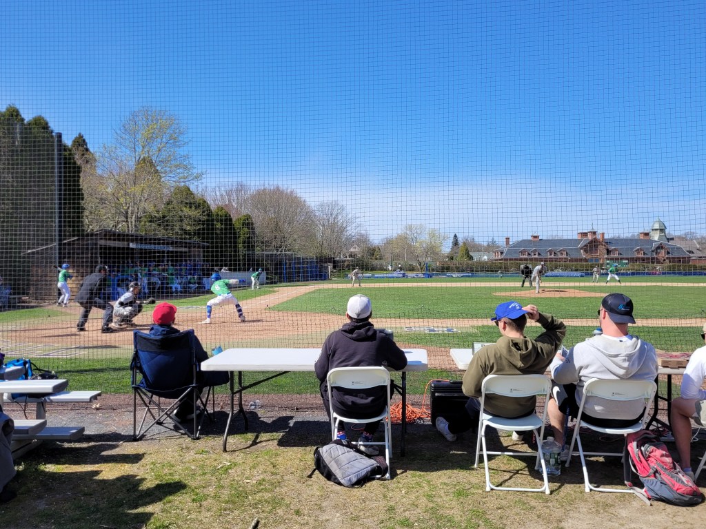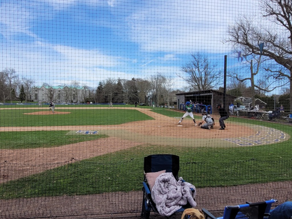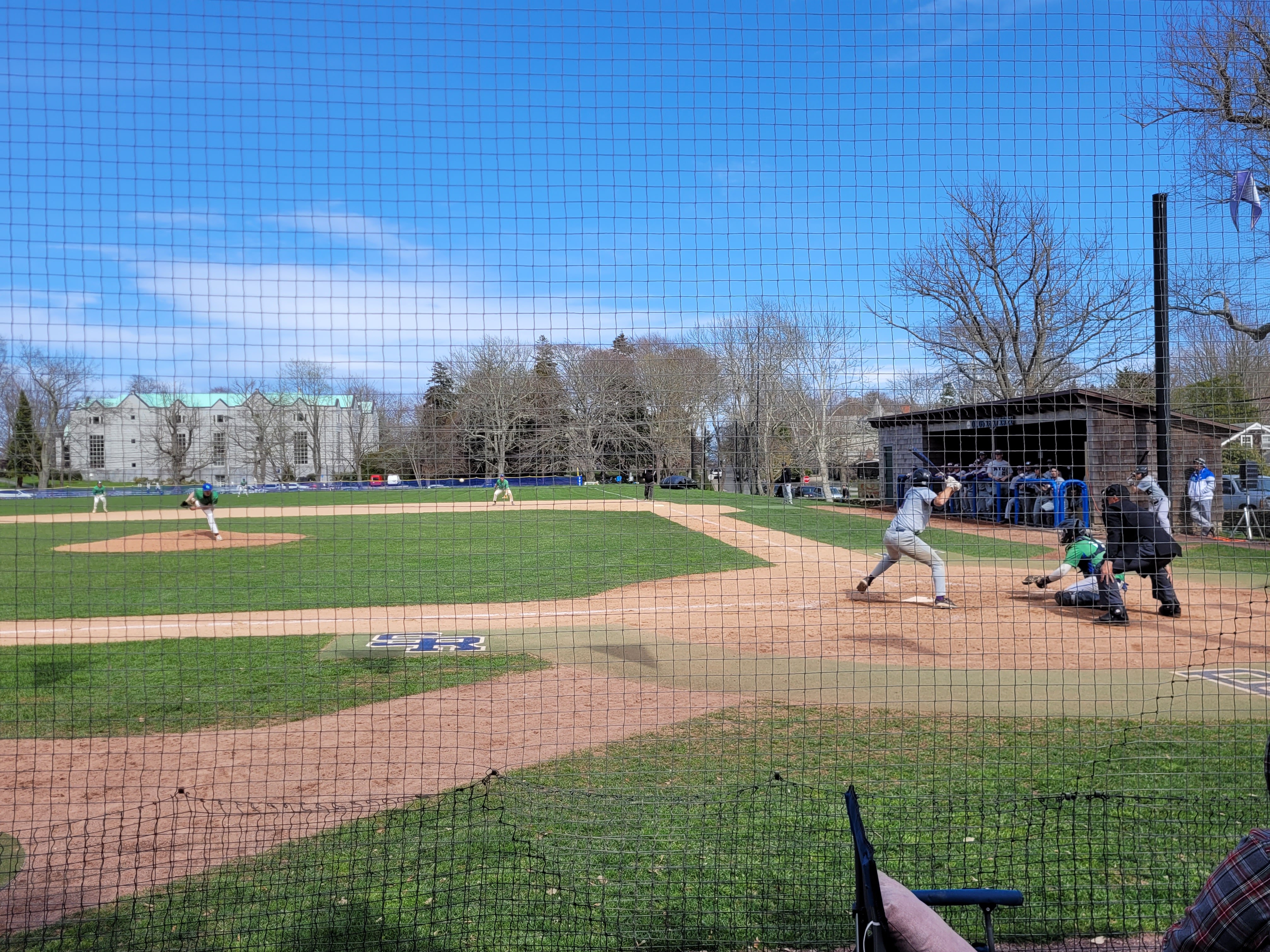 The quote “the more things change, the more they stay the same” can be used to describe personal events, business dealings, and yes baseball. On the mound on April 17, 2021 – Left handed Starting Pitcher Patrick Maybach from North Kingstown. On the mound yesterday, April 23, 2022 – Left Handed Starting Pitcher Patrick Maybach, still from North Kingstown. Last year, I barely got to see Maybach pitch because of the restricted access to the field. This year, a very different experience as I found a seat on the stone wall behind the backstop, just to the right of the blue Salve Regina stadium seating section. The lefty fired strike after strike, repeating his motion, mixing a crisp fastball with calculated breaking balls.