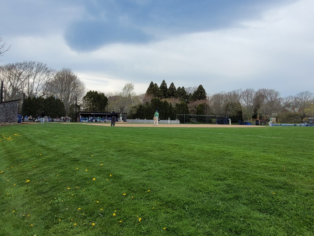 I mentioned the frustrated fans from last year’s game. Yesterday, was a very different story! The Salve Regina sports fans mingled behind home plate, in the aforementioned Salve stadium seats directly behind home plate, in and around and behind the bleacher areas. The in between innings and walk up music was back and loud and energetic. Local Newporters walking their dogs stopped in to check on the score. Salve students took seats in the bleachers and chatted with friends and family members. The visiting NYU families were in and around the dugouts and chatting with players. It was a festive game with a lot of chatter in the dugouts, in the stands, in the area around the stone wall where Rachel and I were sitting – it was a fun game to attend with a lot of energy. Again, quite different from last year’s game!