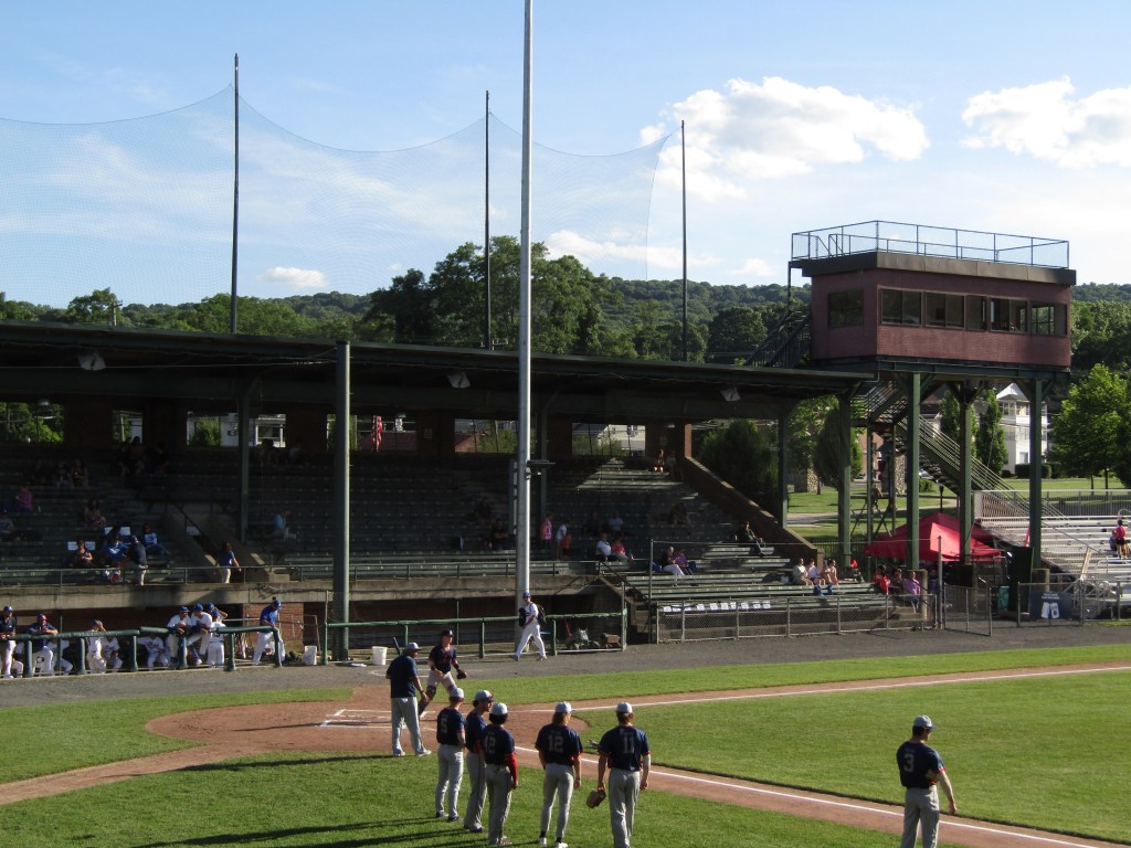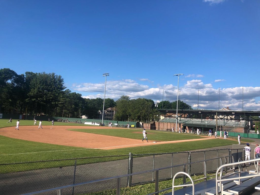 Tuesday night, June 14th, I attended the New England Collegiate Baseball League (NECBL)’s Valley Blue Sox vs Bristol Blues game at historic Muzzy Field. Muzzy Field has been around since 1912 and has been the home of The Bristol Owls (1949-50), as well as the Bristol Red Sox (1973-82). It was also used by The University of Hartford’s baseball program until 2006 (University opened Fiondella Field in 2006), and was used for the Big East Conference baseball tournament from 1985-95. Muzzy Field was a popular destination for the showcase MLB teams back when they would barnstorm, hosting many, many baseball stars, even players like Babe Ruth made appearances.