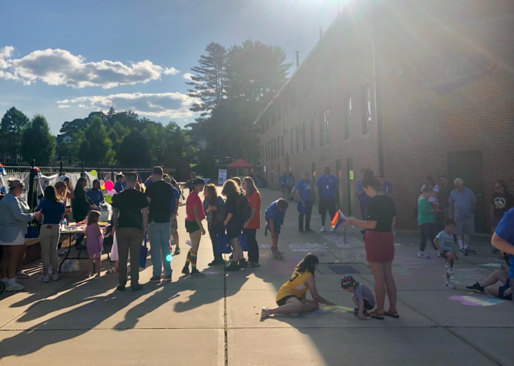 The field was about an hour away from me up route 8 in CT. Once I got there the parking was easy and there were enough parking spots for the fans in attendance and as well as people at the local park next to the field. When approaching the main entrance, there is a concourse that stretched behind the stands from the 3rd base line to the 1st. There were concession stands on each side and people grilling hot dogs and burgers all game long next to the main entrance. This particular June 14th game was also “Pride Night” so lining the concourse were tables set up with organizations and groups that are a part of and support the LGBTQ+ community. All around them were kids drawing with chalk on the ground, and every drawing was spreading positivity and love towards the LGBTQ+ community.