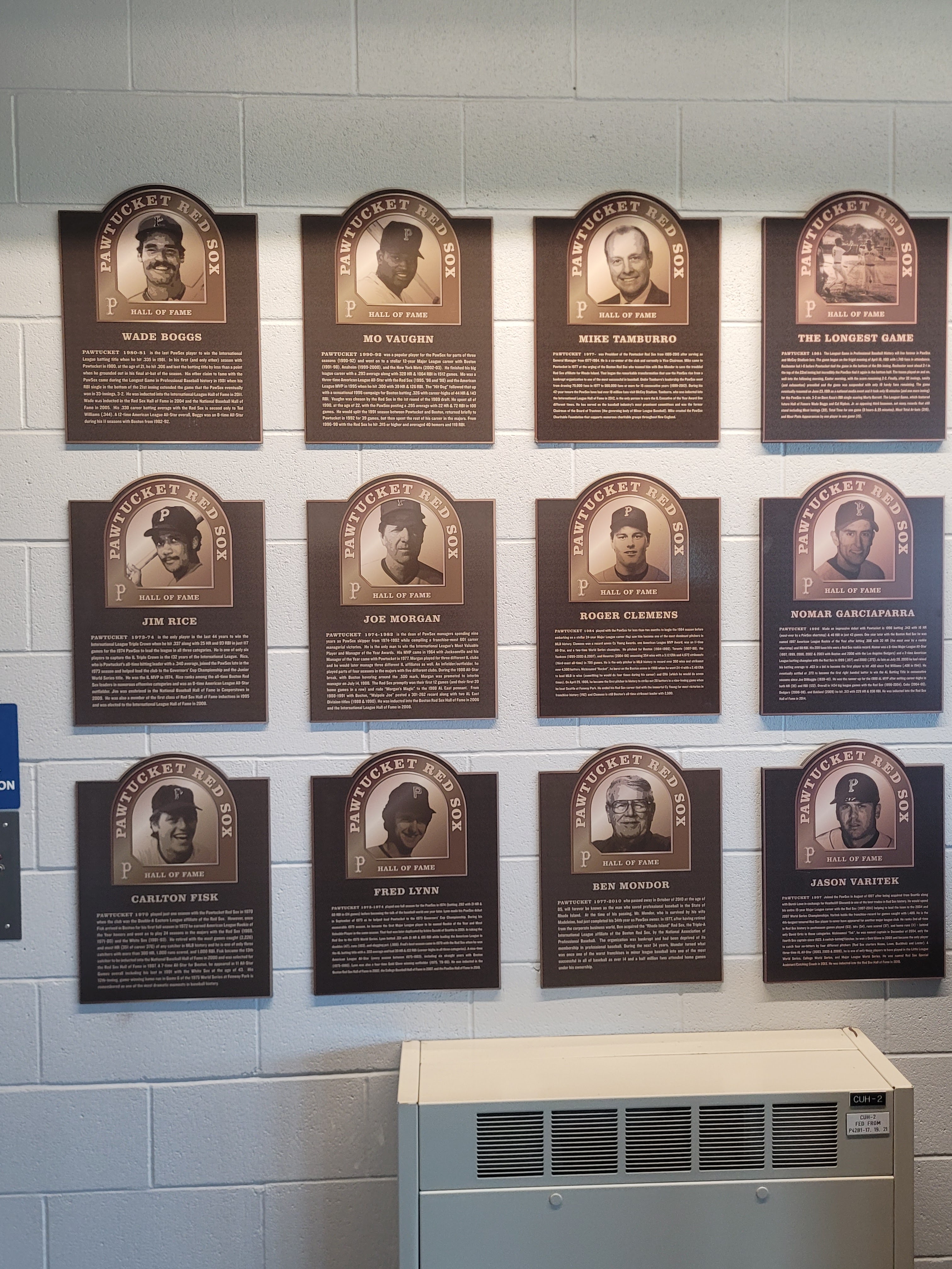 As we walked through the lobby and up the stairs, Rachel and I began telling Kevin about my baseball life and this Rhode Island Baseball Experience project and how it tied in with the Pawtucket Red Sox. I wanted him to know how important the Pawtucket Red Sox were to me and my family and he listened and listened some more and not once did he interrupt me or attempt to sway me one way or another. And as I walked up the stairs and onto the second level of the stadium, I felt the same feeling from the design and photos of Polar Park. There were tons of Pawtucket Red Sox photos and memorabilia honoring the Paw Sox years. They were there for 50 years, that is a lot of history. And it doesn’t have to be wiped out or erased just because the team moved. Mookie Betts is still in a team photo, so is Jim Rice and Dwight Evans and Wade Boggs and Roger Clemens. Polar Park did a masterful job of honoring the wonder Pawtucket baseball history of the AAA affiliate for the Boston Red Sox for 50 years and its stadium.