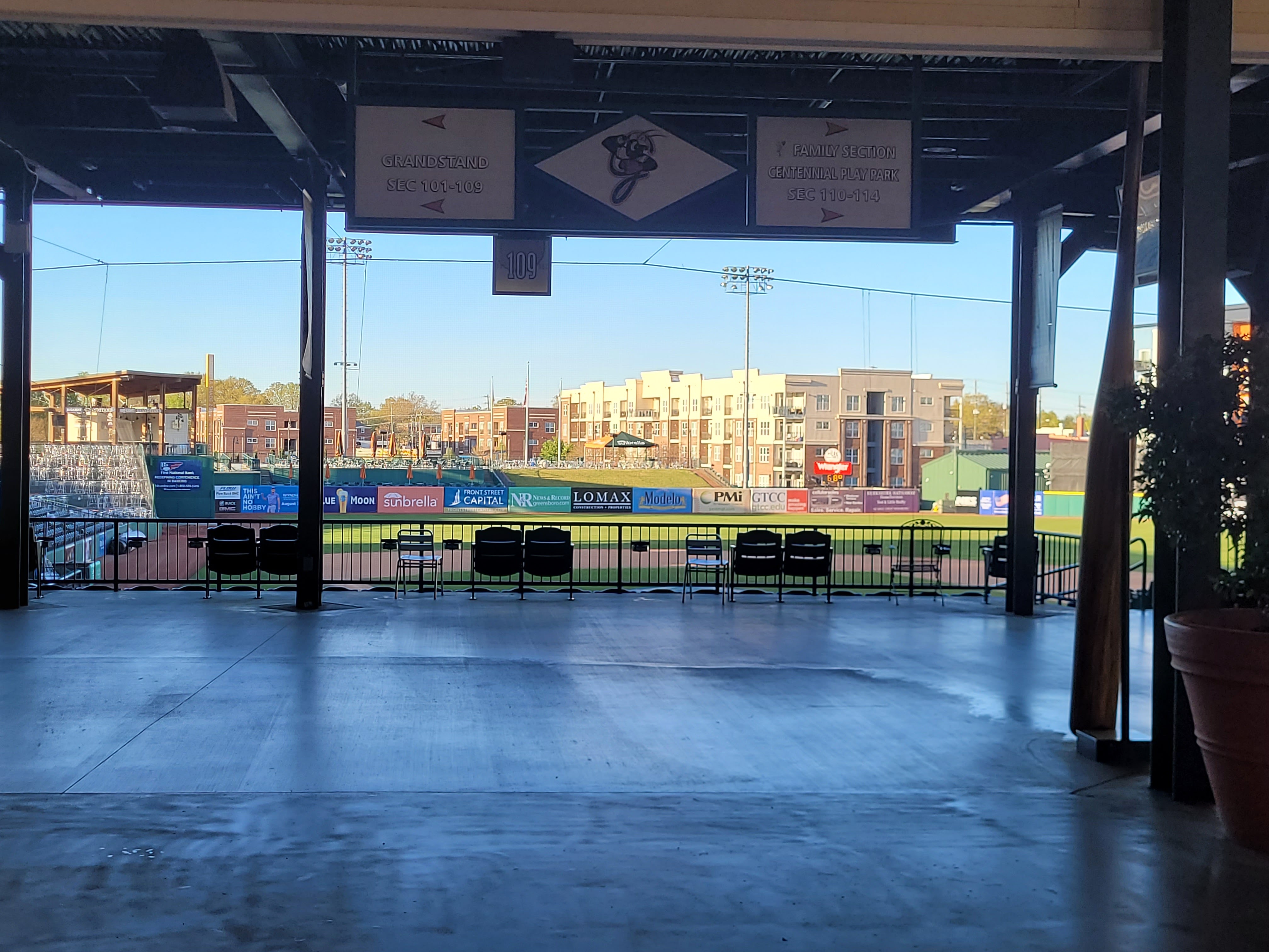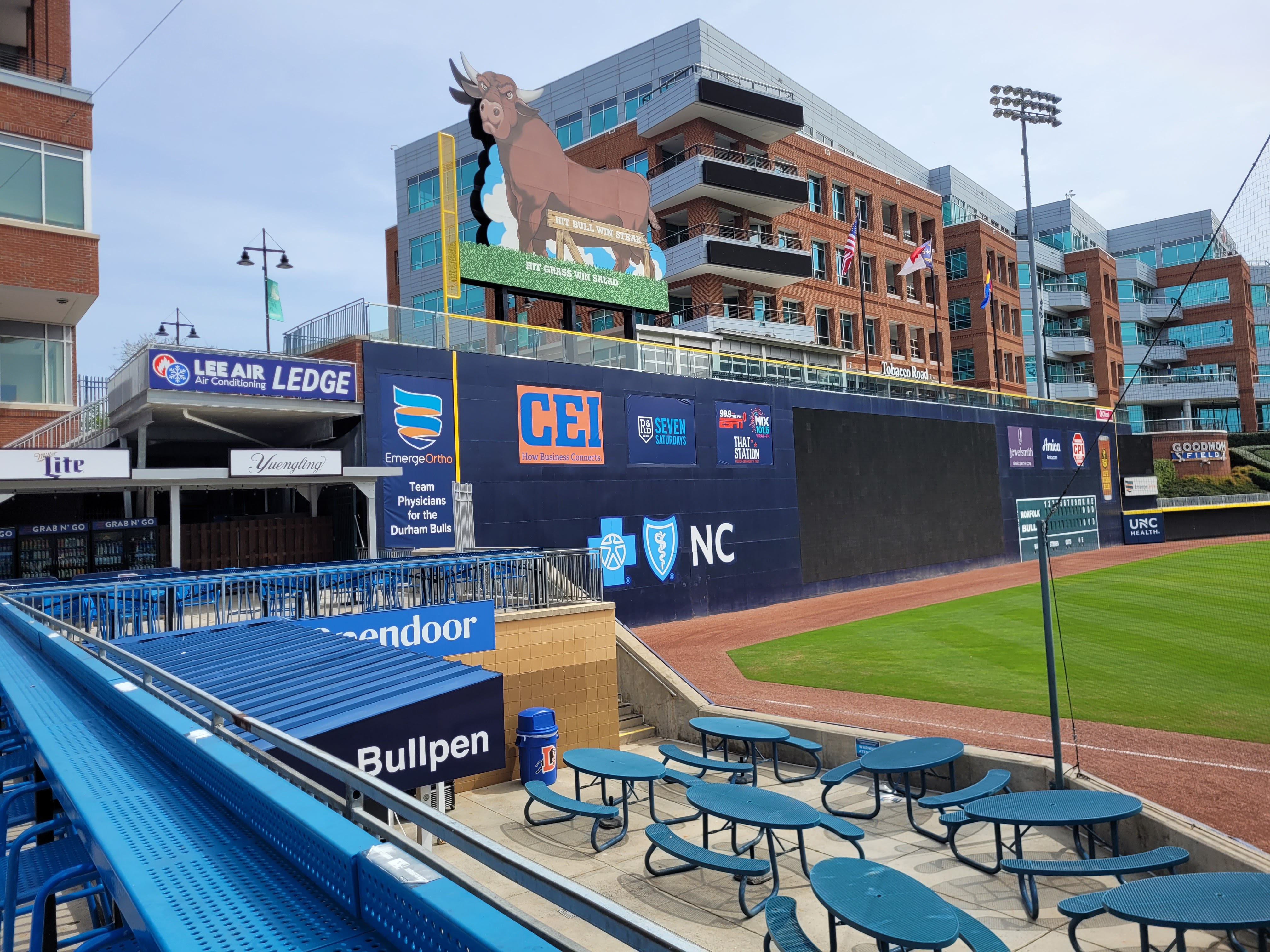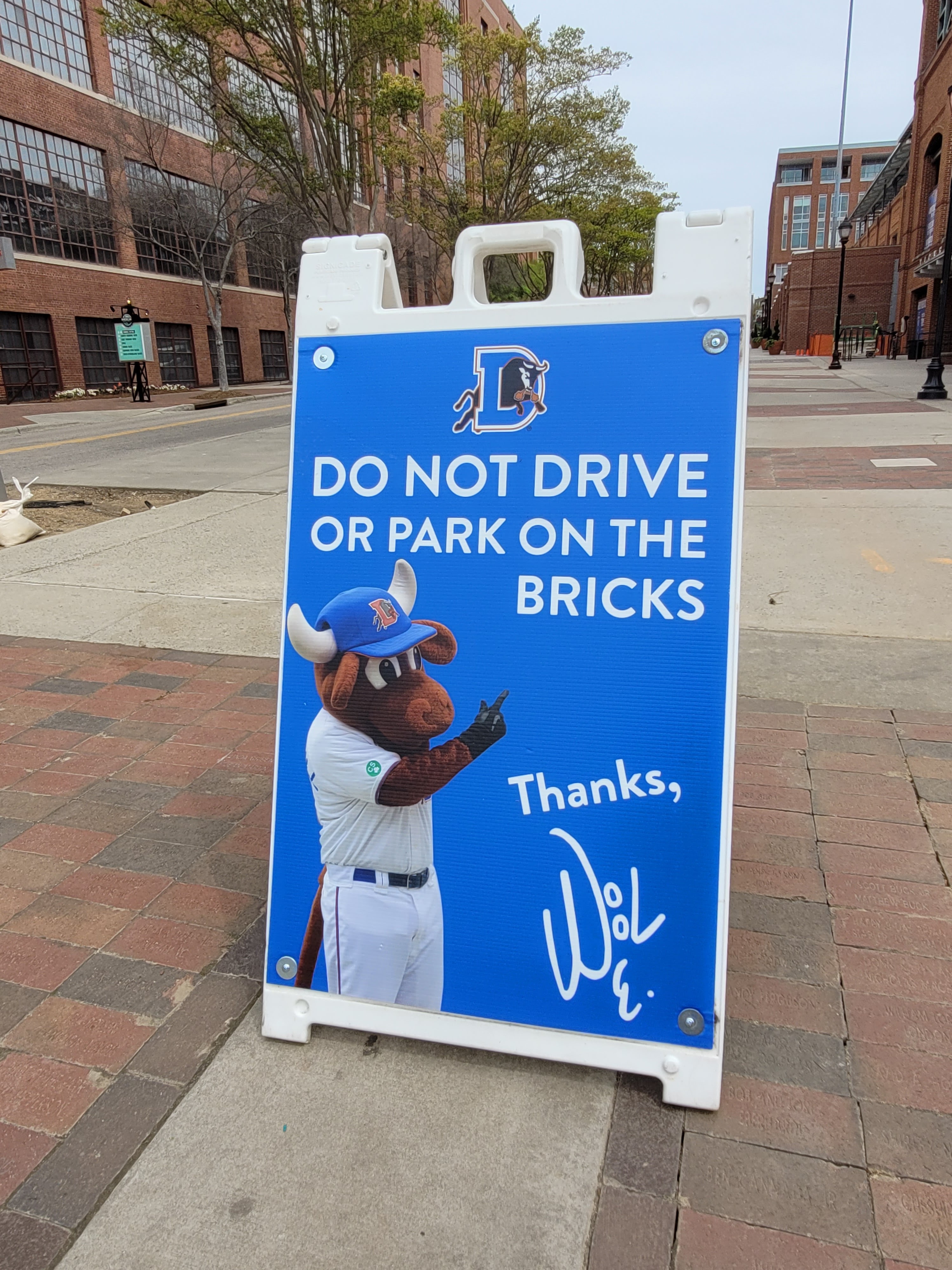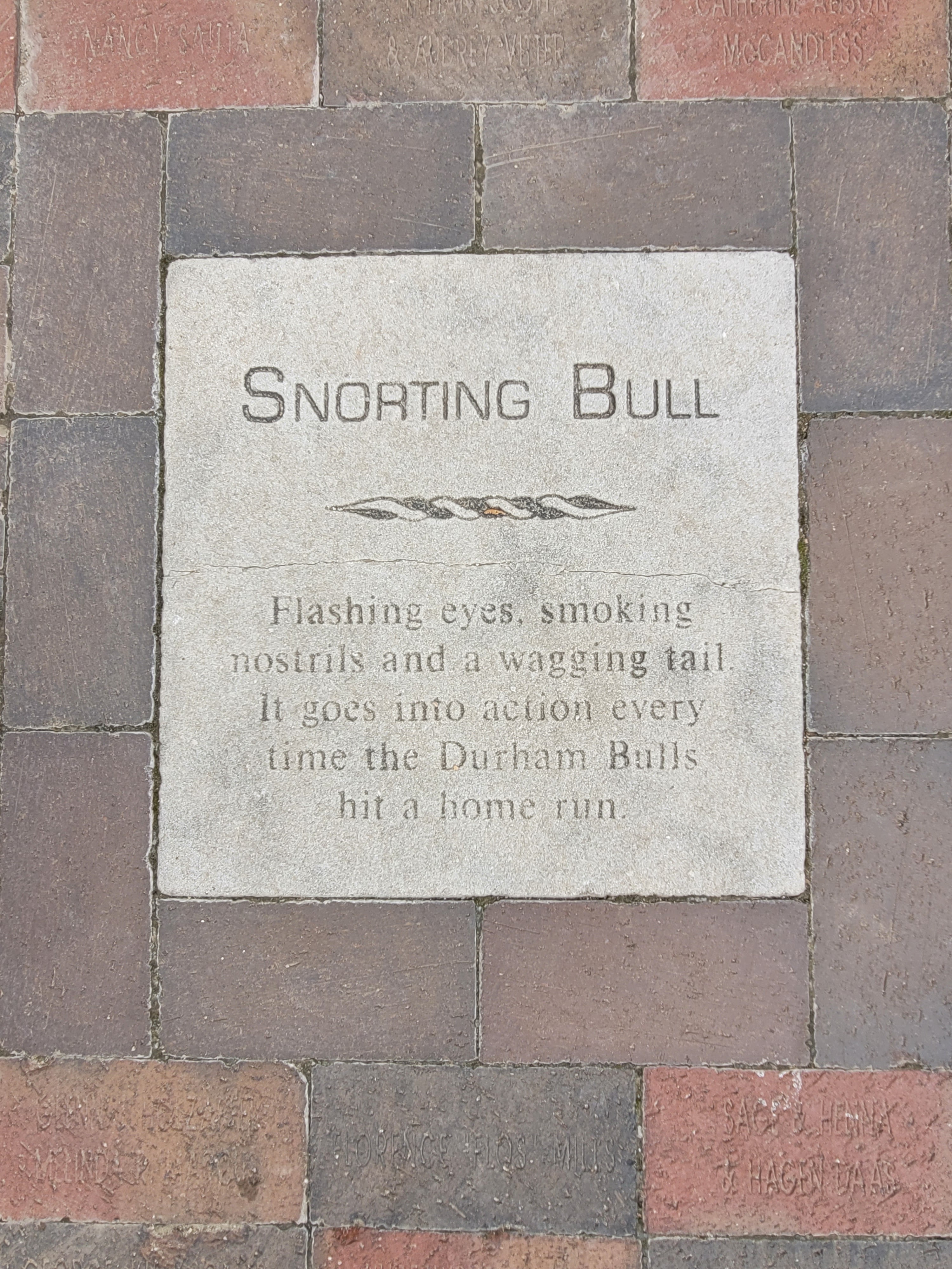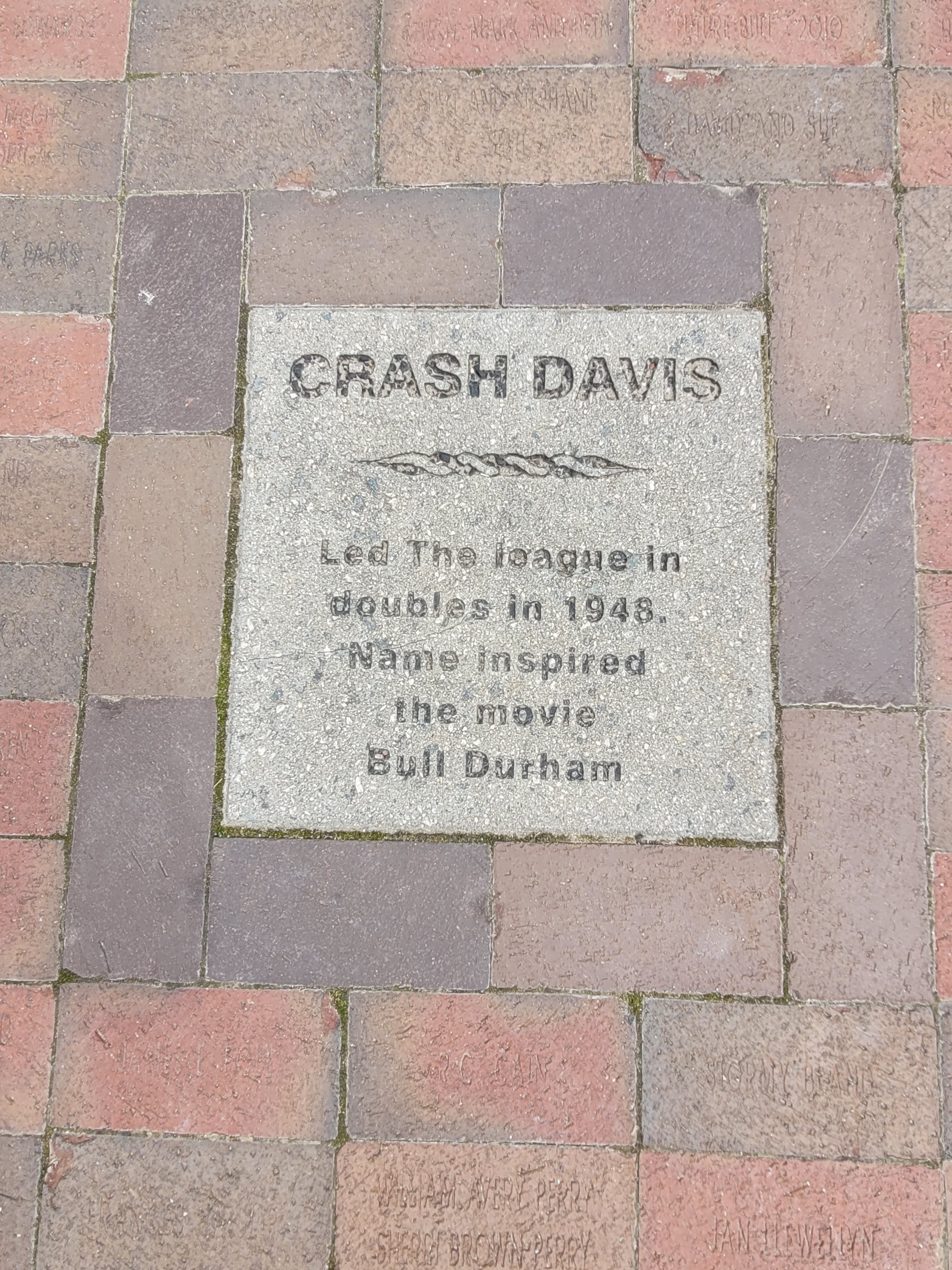 Come on, you didn’t think I would go to North Carolina and not visit the huge roster of minor league baseball parks did you? Rachel and I stopped in to First National Bank Field, home of the Greensboro Grasshoppers and I took a quick tour around the complex. No games scheduled, so the gates and entrances were closed. No worries, got a few views of the field from the main gate area and in right field. The Durham Bulls Athletic Complex was a bit more accessible for viewing, even though there were no games scheduled. The Bulls had just wrapped up a homestand against the Norfolk Tides. Rachel and I got to check out the souvenir shop and the surrounding area of the ballpark. There were a number of cool landmarks and plaques I snapped photos of: