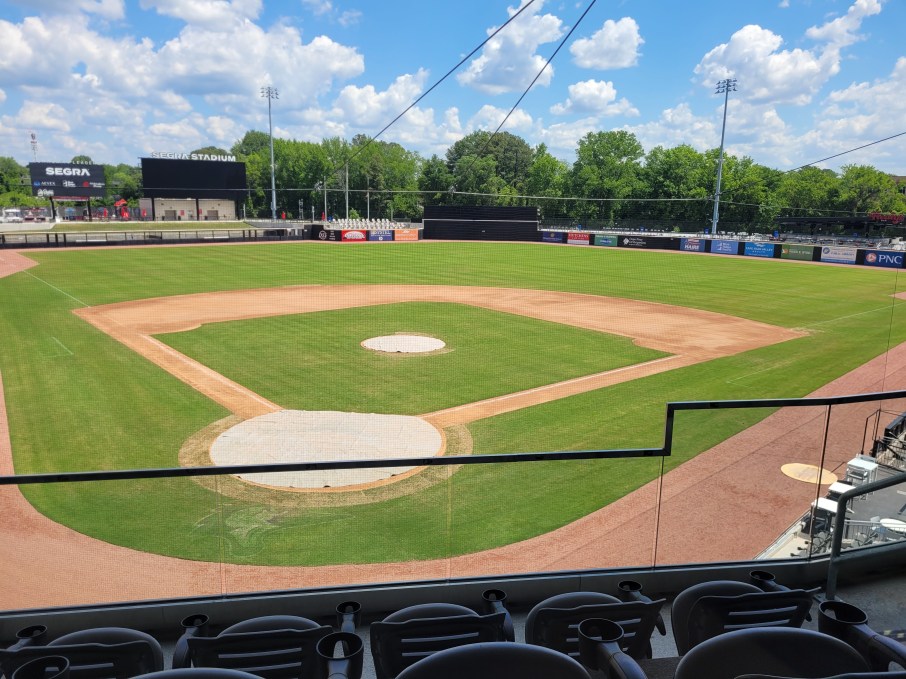 I mentioned the sunshine because Fayetteville weather is considerable warmer on average than my home state of Rhode Island. Something to consider, should you go to a Woodpeckers game and are not accustomed to the North Carolina sun. I highly recommend a hat, some sunscreen, and finding a seat in the shade, if possible. Segra is a beautiful, open stadium with a lot of seats in the sun – which can be a huge plus or minus depending on your sun relationship situation. There is not a bad seat in the entire stadium. With a seating capacity of just under 5,000, there are plenty of amazing views no matter where you sit or stand to watch the action on the field. I loved the rocking chairs out in center field and would probably park in one of those, should I have the chance to go to a Woodpeckers game this season. The suites behind home plate are absolutely incredible, brand new, modern, can be used for corporate events, birthday parties, etc. Michelle mentioned that they hosted a prom there recently in the main suite, which is a large room great for hosting parties and events.
