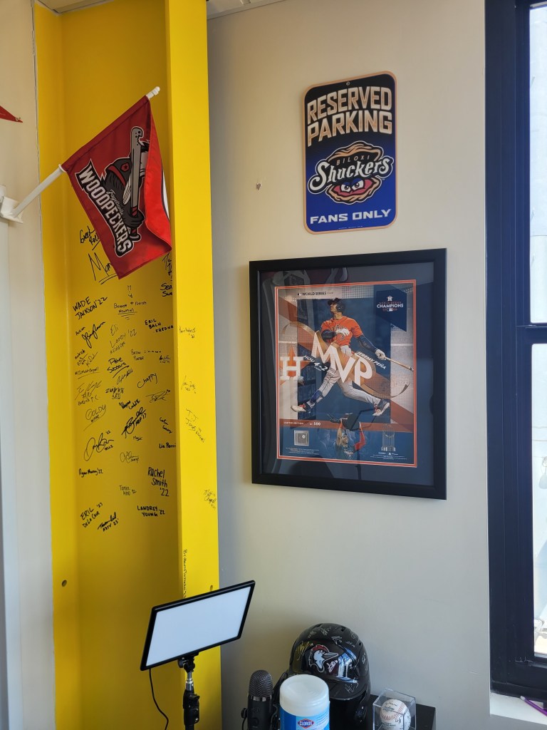 Up in the press box area, there was a steel beam that had signatures of guests from the Astros organization and other baseball people. There was a photo on the wall of Classical High School’s Jeremy Pena, who is now the starting SS for the parent club Houston Astros. Pretty cool that even in Fayetteville, NC I can find a connection to Rhode Island.