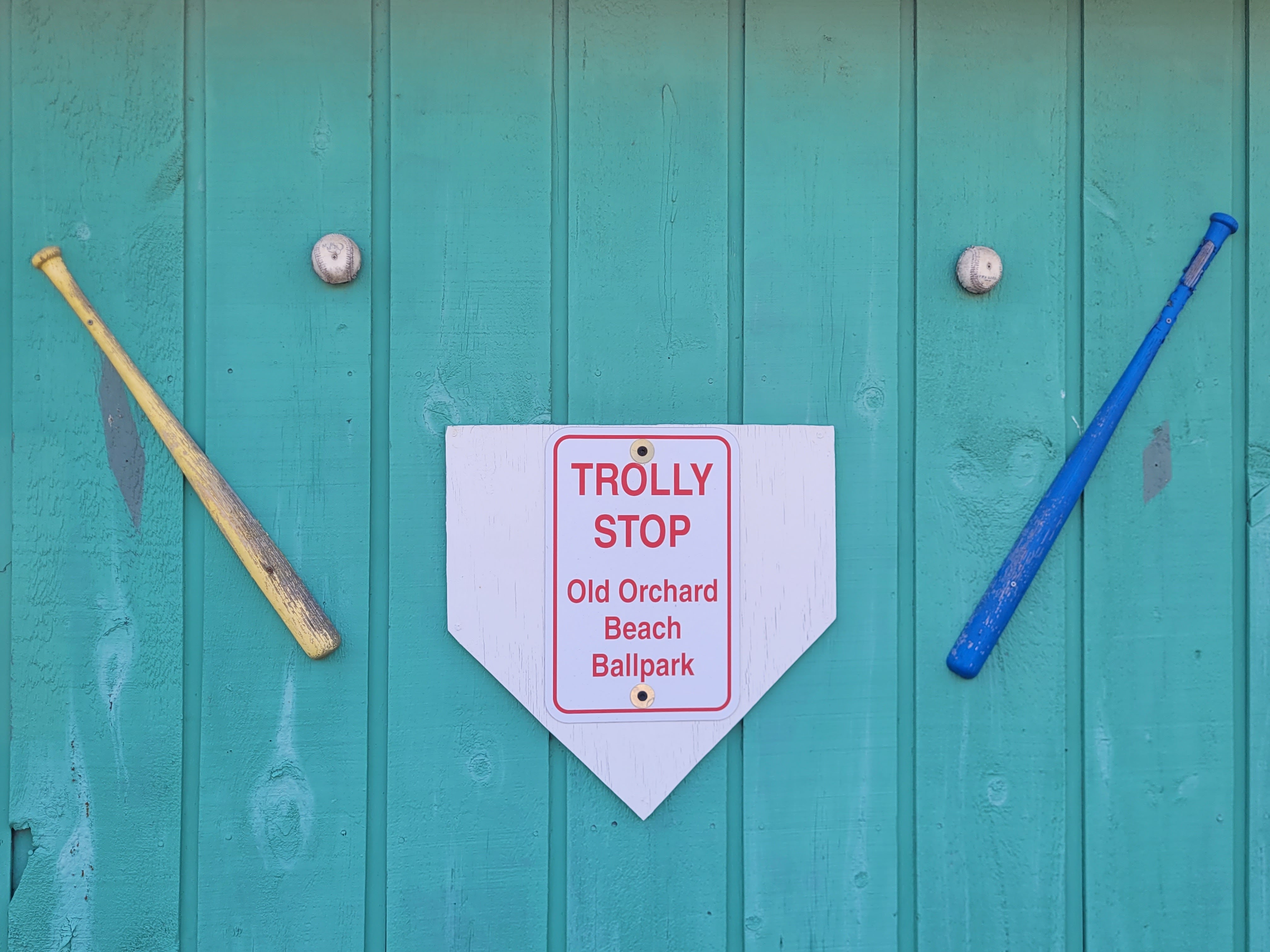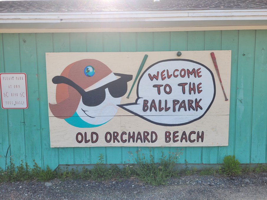 Full disclosure – I am very easily distracted by any sort of baseball reference, sign, cartoon that I might encounter at any given moment. I could be in the supermarket, uber-focused on my shopping list from Rachel, then hear a “who was that Red Sox hitter that hit a grand slam in his first at-bat,” and I immediately lose focus when the responder replies “was it Jim Rice?” Nooooo, it was Daniel Nava and not only did he do it in his first at-bat, but on the very first pitch. And his jersey number was…see how easily distracted I can get? Now imagine me on a getaway trip to Maine with my significant other, Rachel, and I see a large directional sign that says “The Ballpark, Old Orchard Beach.” Steady now, keep it together!!!
