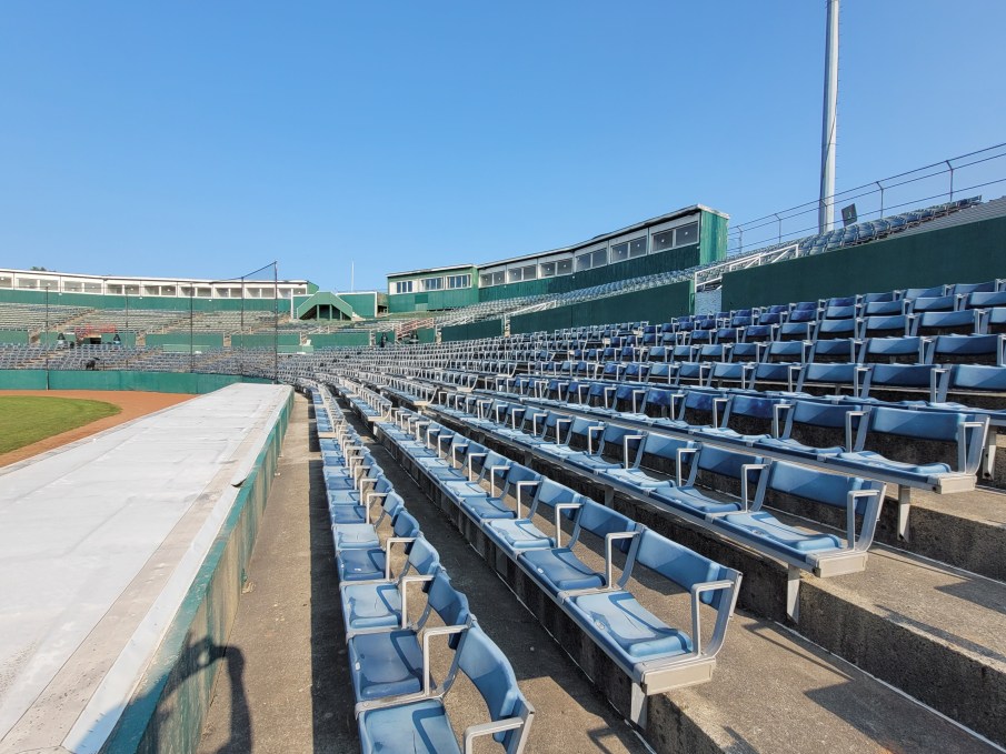 I made my way over to the left field fan area and took a photo of the seats, press box, and seating capacity. Seats were standard fixed, plastic seats a bit worn from the sun, possibly the salt air being so close to the beaches.