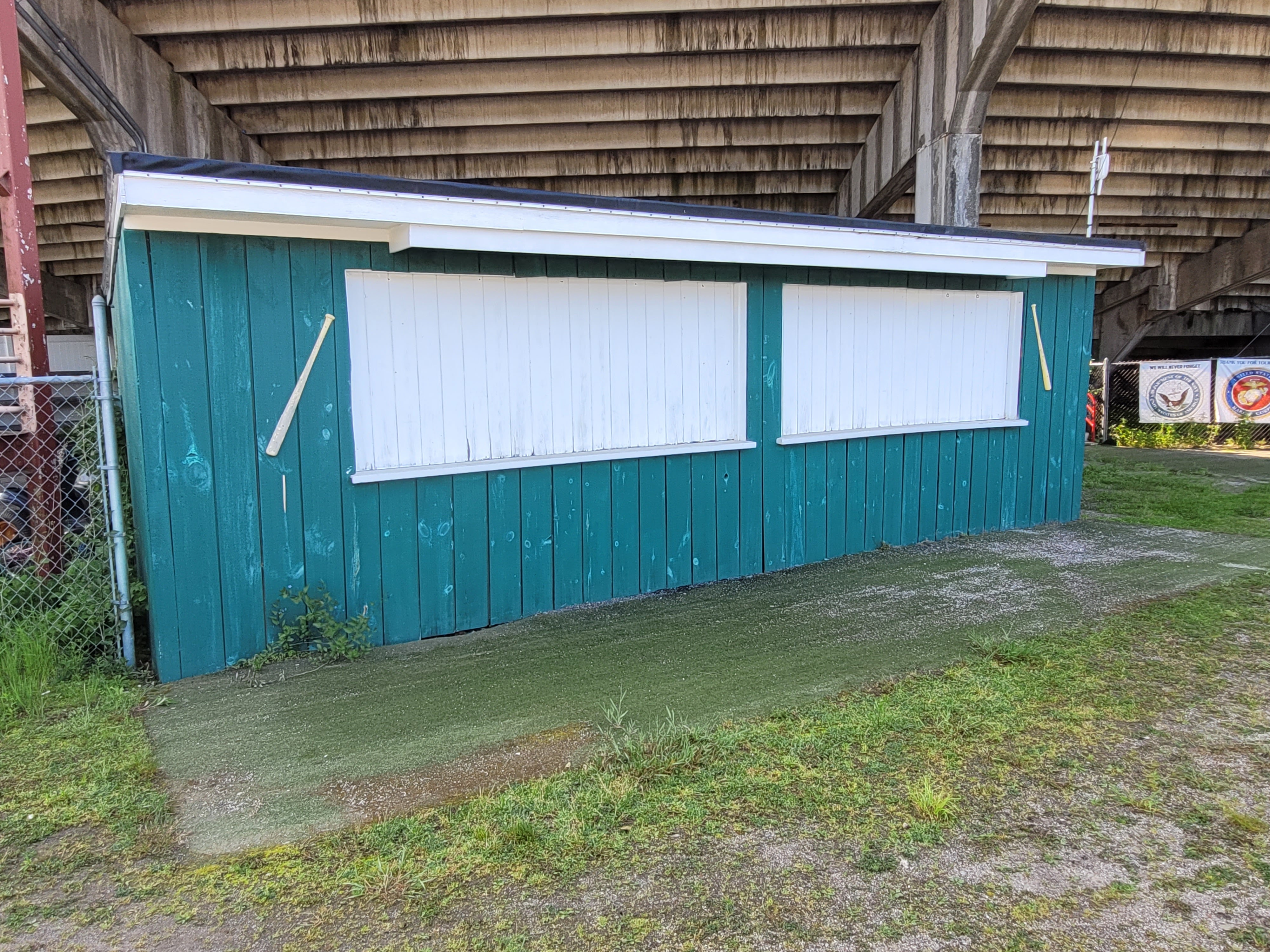 Underneath the bleachers on the first base side, there was a batting cage with an L-screen. I note this because this means baseball activities were present not too long ago. Good spot for hitting and getting ready for a game.