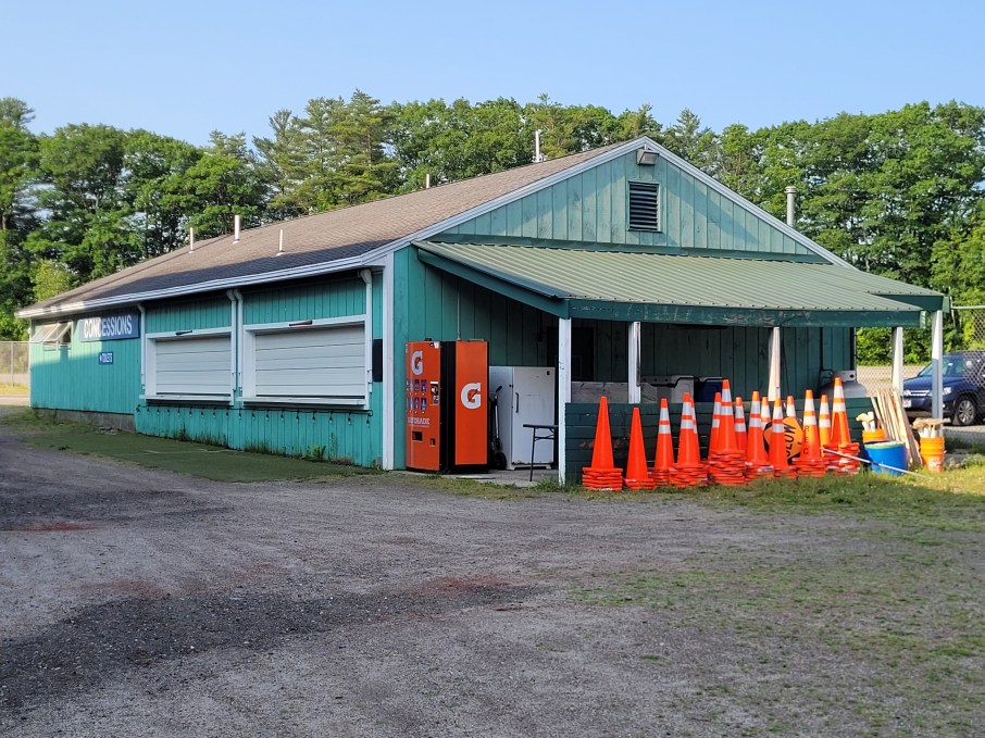 Ok, after a great night’s sleep at the Classic Inn up the road in Saco, I headed out to grab coffees, breakfast sandwiches, and to view a piece of Maine baseball history at the Ballpark, Old Orchard Beach. From my cottage, I drove down Ocean Park Rd, onto Route 5, past Fielder’s Choice Ice Cream, then left on Emerson Cummings Blvd where there was a huge park with baseball fields and softball fields as well as Old Orchard Beach High School, then a quick right (you guessed it) Ballpark Way. Ballpark Way led me down to a back dirt parking lot and the Ballpark. I pulled up to a spot, saw that the gates were open, there was a man watering the field, and was excited that I would get a shot to walk around the complex. Here is what I discovered: