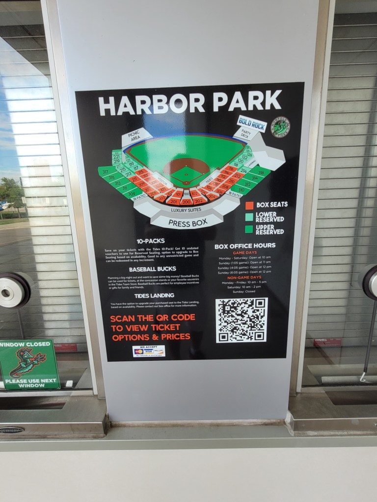I mentioned that the Boathouse was behind Harbor Park. Harbor Park is home to the Norfolk Tides, now a minor league baseball affiliate of the Baltimore Orioles. When I was living in Virginia in the late 1990s, the New York Mets were the parent club of the Tides. I had a friend who worked at the park, so I got to see games for free. I would sit down behind home plate and watch the AAA Mets every chance I got. I met and befriended a Mets scout and even considered becoming a scout at one point. The park is still there and thriving and they have made some incredible infrastructural improvements to the area. Here are some photos from my walk around the park (no game due to All Star break).