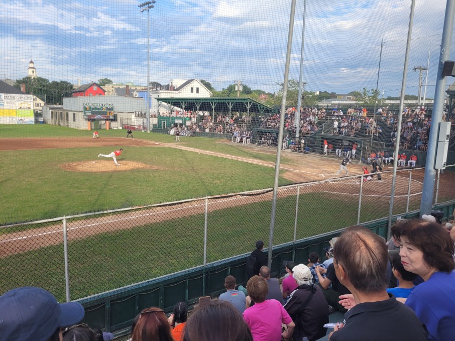 I have played, attended, and written about baseball at Cardines Field since I was 17 years old. I have pitched, played first base, got base hits, watched home runs, watched HS, NECBL, American Legion, LL Juniors, Babe Ruth level games. I know the park very, very well. Yet, every single time I go to a game at Cardines, it is as if I had just walked through the front gates for the first time. I am in awe of its history, its quirky dimensions, its short right field, its trees that overhang left field, the playground behind left field, the homes around the park, the side streets that lead to the outfield fencing, the bleachers, the short back stop, the close proximity you are as a fan to the players and game on the field. I just don’t know if there is another baseball field I have experienced that makes me feel the way Cardines does. In short, I love it there.