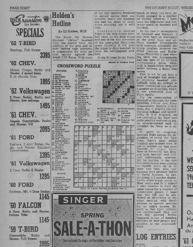 And one last one, a commentary piece written about the state of baseball on Quonset Point and other neighboring naval stations. In short, it discusses the decline in teams, leagues, and the shift to playing softball on the bases. This commentary piece was published in the Quonset Scout, 1963: