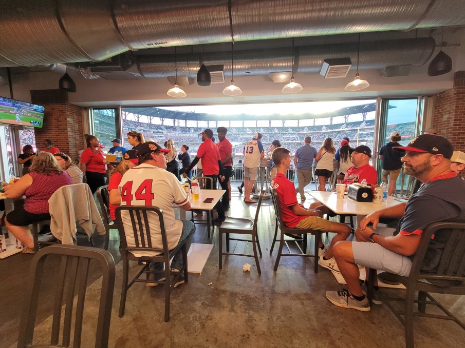 There were food vendors of all kinds, genres, varieties stretched across the concourse. So many choices, we actually walked around the entire stadium once before settling in inside the Chophouse in right center field. Great food, amazing view of the field, TVs everywhere, great atmosphere. And home run balls fly in there all the time!