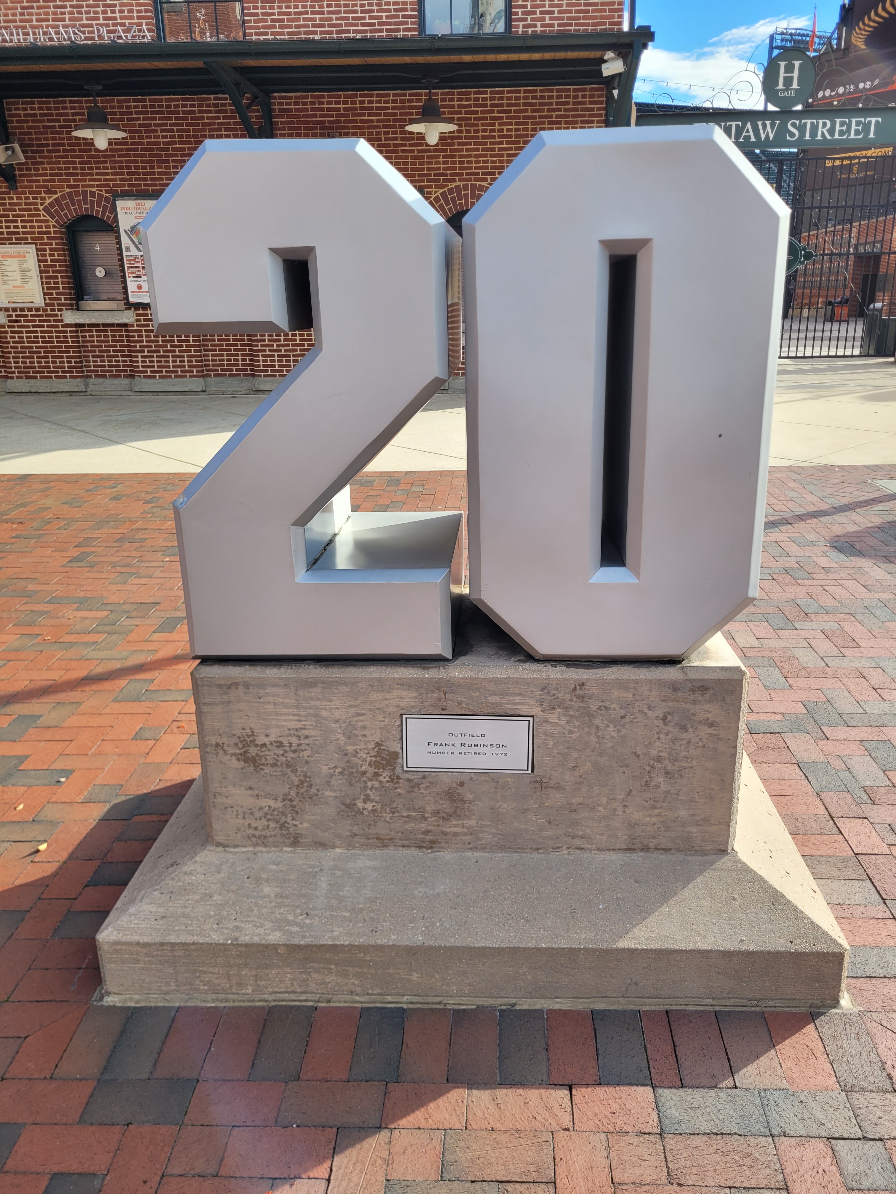 Being that it was 8 years since I visited Camden Yards, I didn’t remember all of the other numbered statues outside of the Eutaw Street Gate. I took a moment and walked to each one, reading the inscription on the statue, and recalling how awesome a baseball player they were. Jim Palmer, Frank Robinson, Manager Earl Weaver, Brooks Robinson, Eddie Murray, and of course Jackie Robinson. Here are the other number statues outside of the famous Eutaw Street entrance.