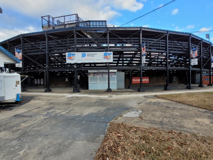And that is exactly what I did yesterday. Fully expecting the stadium to be locked up, I took the drive from Virginia Beach, over/under/through the HRBT, and into Hampton, VA. A short drive past the Hampton Coliseum and onto Kentucky Ave in just under 30 minutes. Rachel and I parked in the vacant spectator lot, which was open, and began to walk around the closed park.