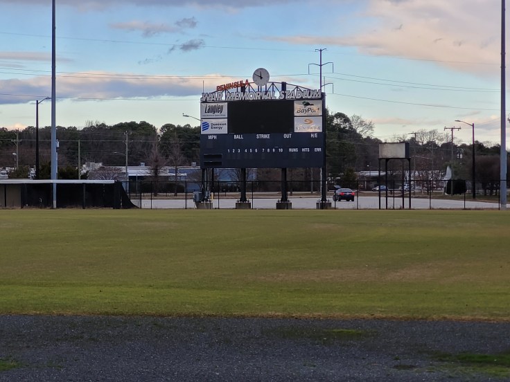 This Hampton stadium struck a chord with me. I remember playing in a championship game, the year my team won the league title. I remember playing in a large stadium with bleachers that wrapped around home plate and past each dugout. I remember playing left field in a larger than life field. Our team played a lot at Lakewood and other area high school fields. Now, this championship game was definitely played at a stadium that looked like a Single A Minor League ballpark. Was this one of my fields of my baseball youth? One way to find out – drive over the bridge and check it out in person.
