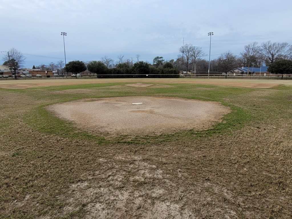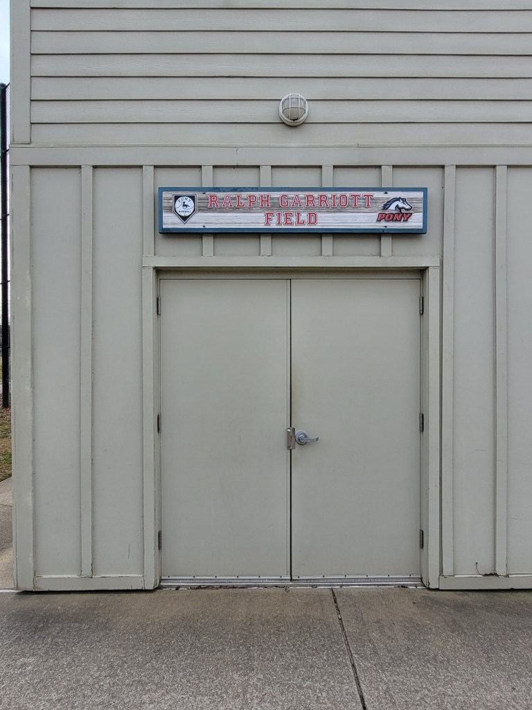 After a nice walk with the Weims around the circumference of the park, I took a few photos of the two baseball fields. The fields, part of the Kempsville Pony League, were in decent shape for winter. I’m guessing the local baseball moms and dads will be out soon to put up banners, line the basepaths, clean out the dugouts, rake the field, and prep the field for the 2024 season. As I was leaving, I snapped a photo of each press box so I could research the field’s namesakes – Ralph Garriot and Roland Hargrove.