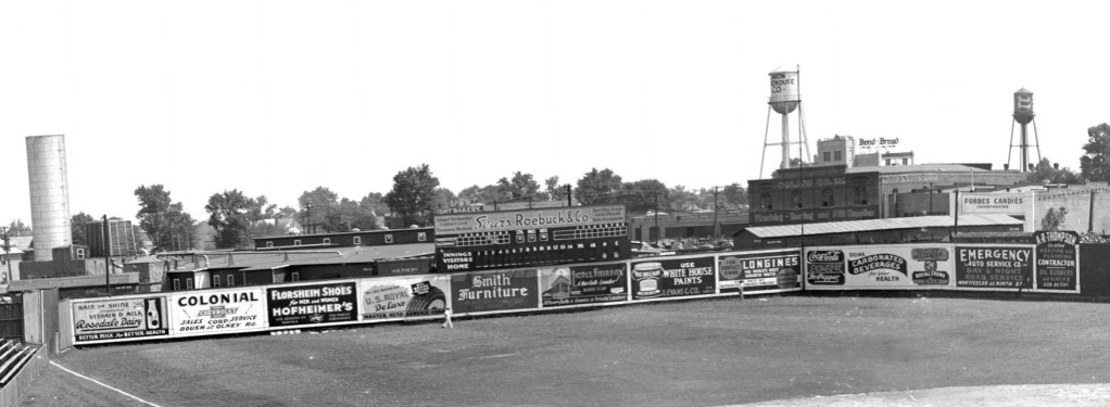 So one of the things I love to do when I visit baseball fields is walk the perimeter of the field, stadium, ball park. I look for commemorative plaques, statues, memorials, signs, interesting tributes to learn more about some of the significant figures that helped shape that baseball community. With Bain Field having been demolished back in the late 1930s, early 1940s, I don’t have the luxury of driving to E 20th St. in Norfolk to explore. However, I do have this beautiful photo as a reference to things like sponsorship billboards, scoreboard sponsors, and surrounding businesses. And why is this interesting to me?