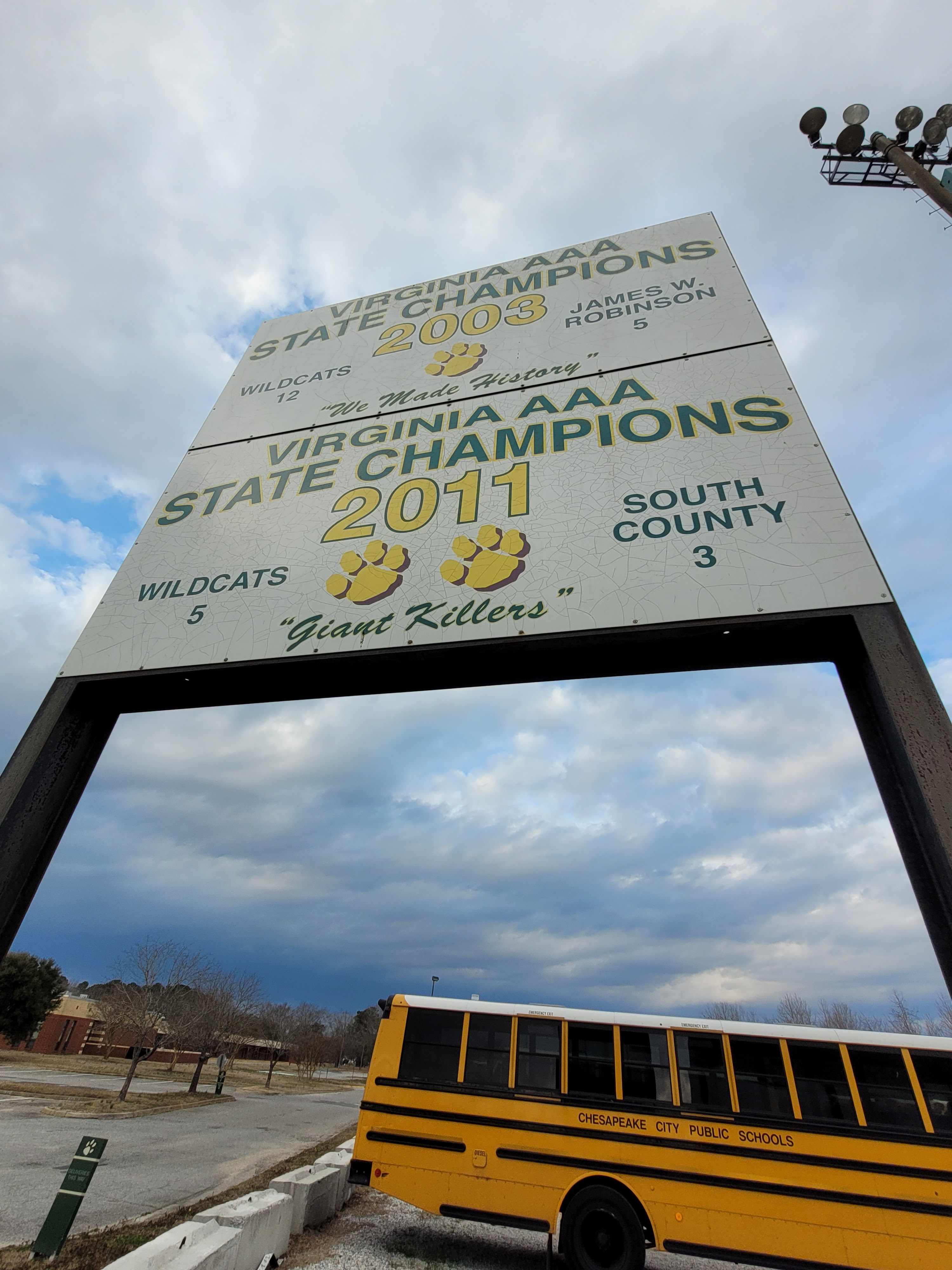 It was a great visit to Great Bridge High School and the Wildcats Baseball Field. Some big time players have come out of this program, notably Michael Cuddyer, and from my research at home, both Upton brothers who played in Major League Baseball. The number 2 on the wall is for Justin Upton. The Lee 11 is for Coach Wiley Lee, who coached at Great Bridge from 1998-2011. You can see all three in this link from Great Bridge High School’s Hall of Fame page. And from what the man I met was saying about the next generation of talent, it looks like Great Bridge may have to add some space in the outfield for some additional championship signage.
