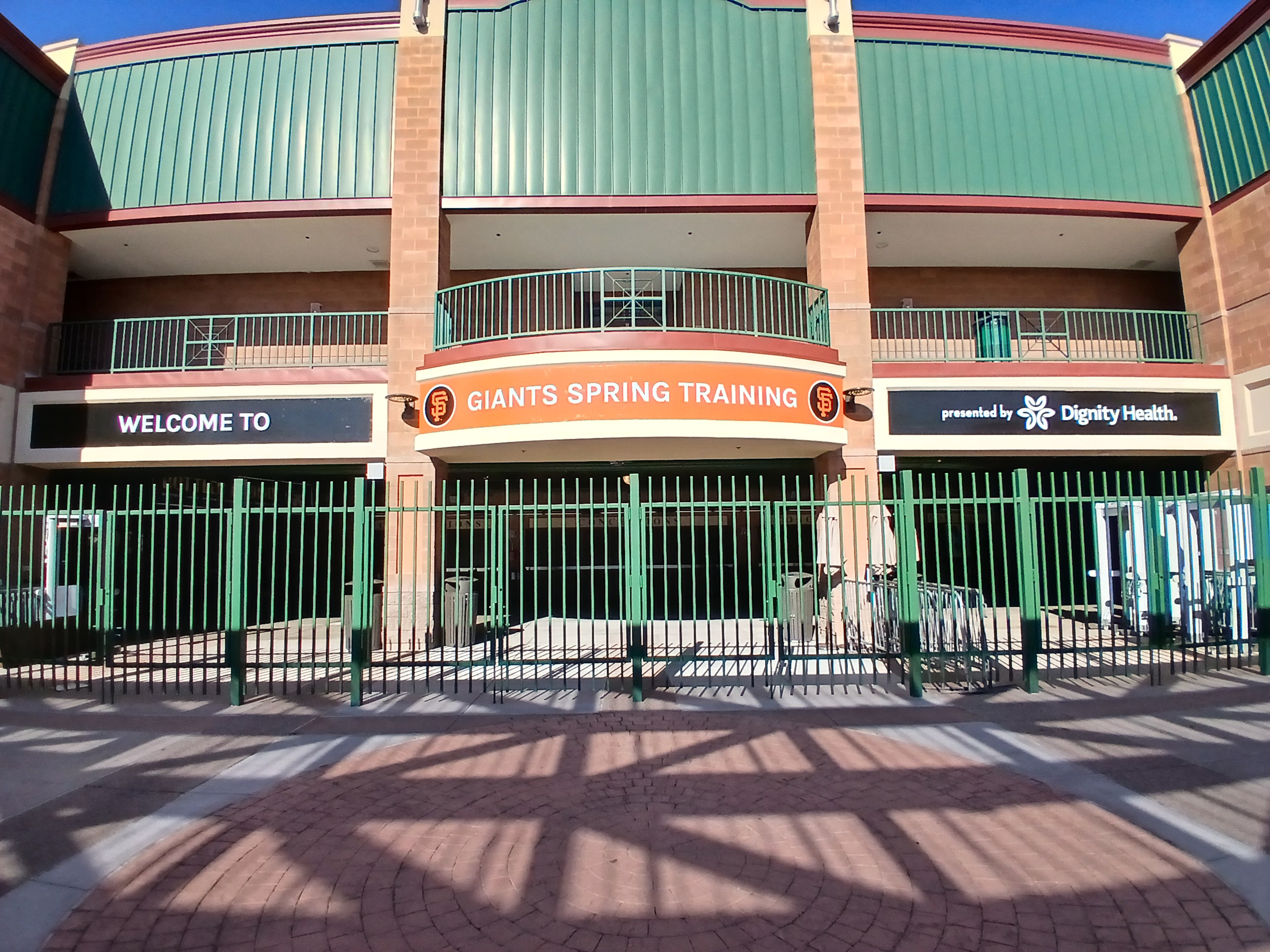 After finishing up work around 3pm on Monday, March 11th I parked my rental car and walked less than a mile up to Scottsdale Stadium. Scottsdale Stadium is the Spring Training home of the San Francisco Giants. When I arrived Monday afternoon, the Giants were not playing, nor were they practicing at their facility. The stadium was closed, so I took the time I had to just walk around the stadium, chat with a few parking lot attendants, some other baseball fans who were at the park taking photos, and just soak in all the cool Giants stuff outside the stadium.