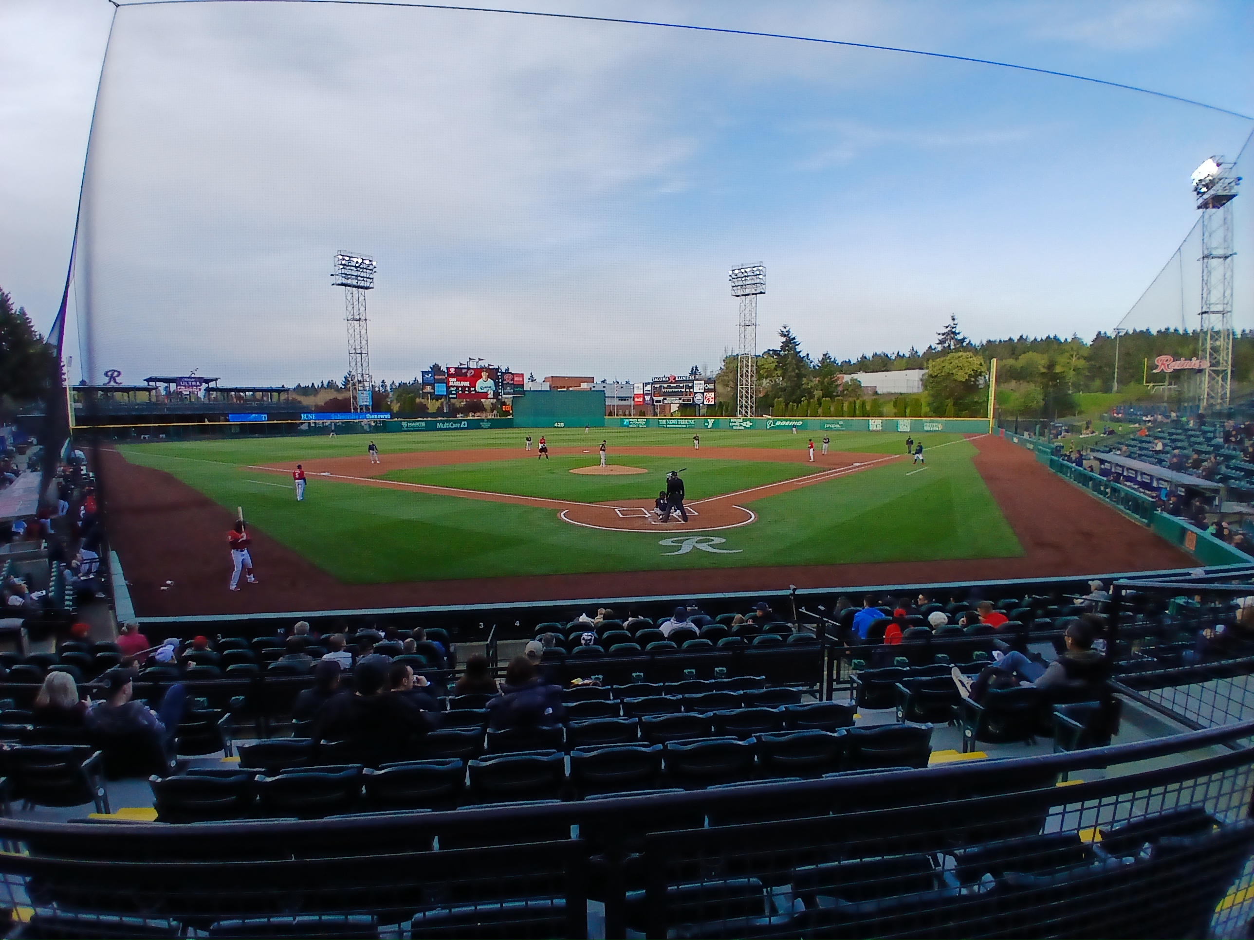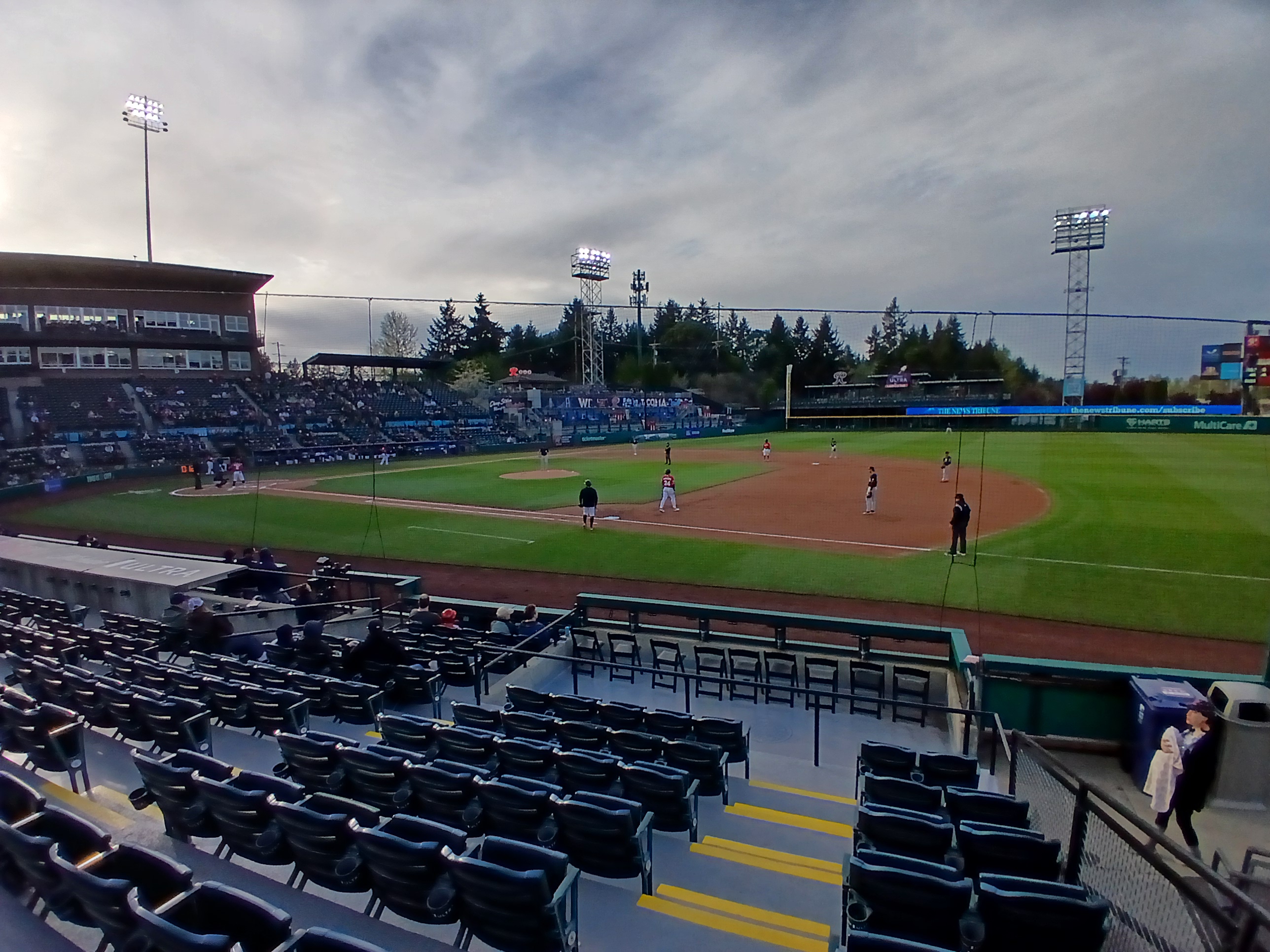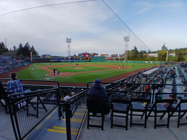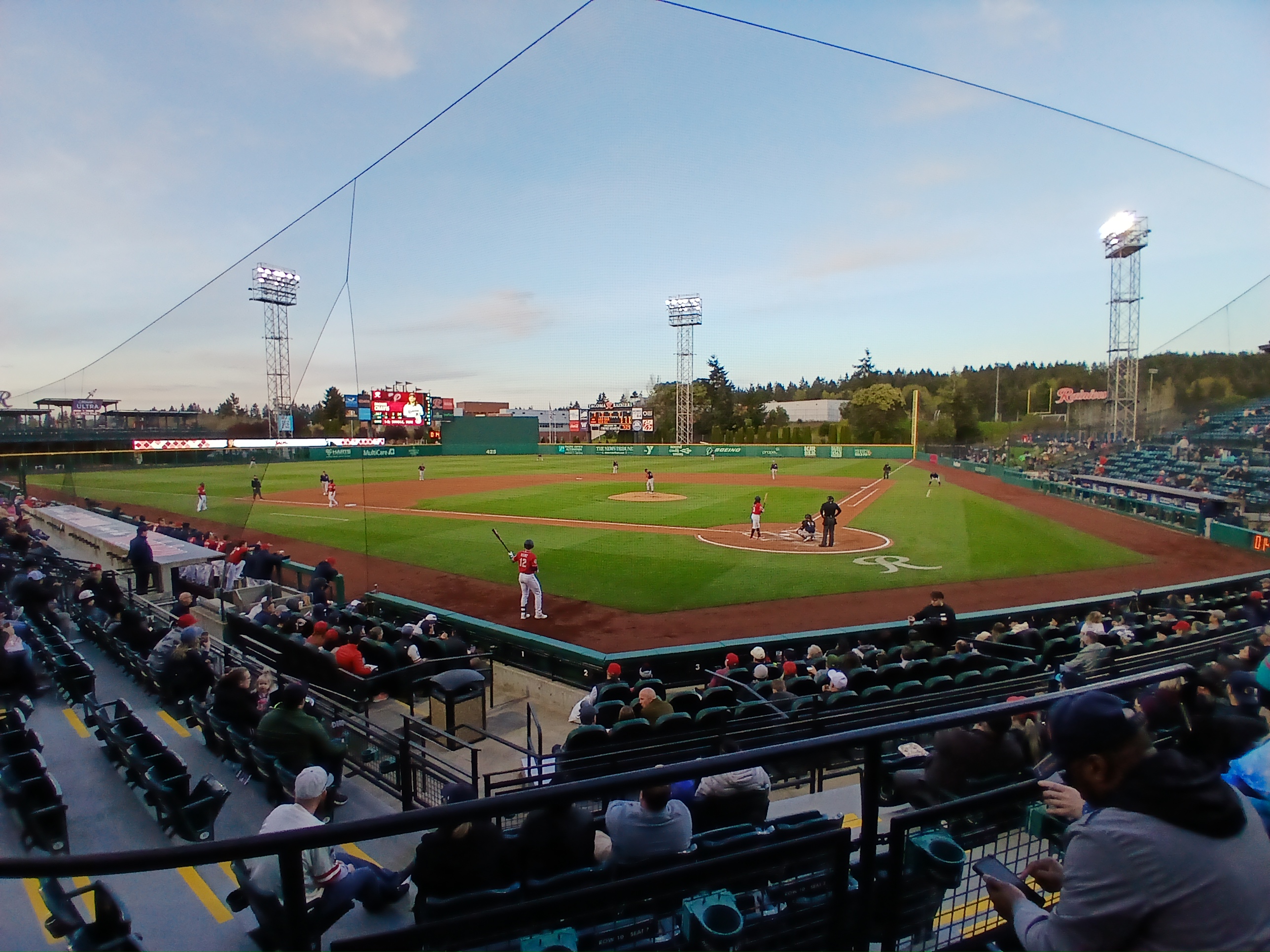 After a few rainy nights (Sunday, Monday, Tuesday), I took a gamble and decided to head out on Wednesday after work to catch a Rainiers game. The Tacoma Rainiers play at Cheney Stadium, a beautiful baseball park just outside the downtown Tacoma area. From my hotel downtown, it was a mere 5 mile ride down mostly local roads, easy to find, easy to park, $7.50 to get in via a general admission/lawn ticket. I’ve said it once, I’ll say it a thousand times, I love minor league baseball, the parks, the ease of attending, it is a mostly positive experience just about every time. And Wednesday night was no exception.