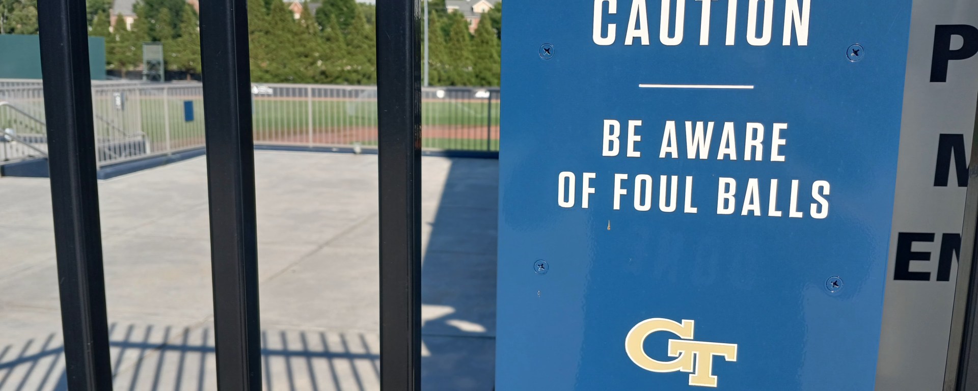 It was a beautiful day in Atlanta walking around (well fast walking) the perimeter of the Georgia Tech Yellow Jacket baseball stadium, aka Russ Chandler Stadium at Mac Neese Baseball Park. The campus had a really nice layout with classic, fraternity style buildings across from the baseball field. Kids were out playing cornhole, sipping on lemonade and flavored water (probably a bit naïve, but just in case any GTech parents are reading this), a lot of joggers and cyclist about on campus. I was so appreciative of the patrolman who let me park behind him for a few minutes to check out the stadium. It was an awesome walk down to corner of right field to see the banners, the plaques behind home plate, the baseball field, and all things Georgia Tech baseball that I could see through the gates. Overall, it was an awesome Georgia Tech baseball experience on a super sunny Tuesday in Atlanta.