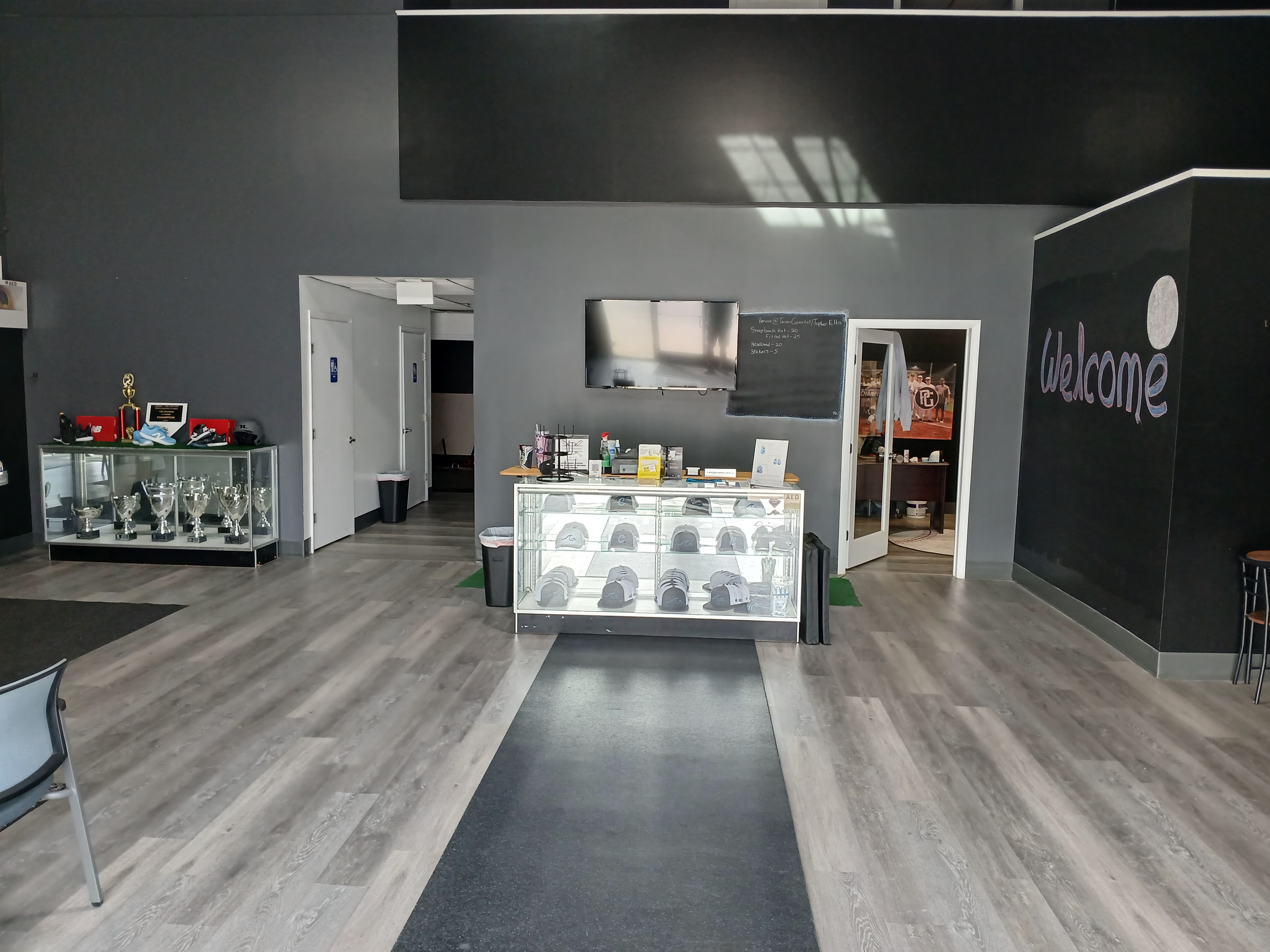 Coastal Sports Center is located at 2633 Wyoming Ave in Norfolk, just a few minutes drive from my home in Virginia Beach. Honestly, it was relatively easy to get to and there was plenty of parking in front of the building and in the parking lot facing the front door. I walked into a large lobby area with front desk, pool table, sitting area, and was greeted by the owner, Topher, who was finishing up a coaching position interview. Great first impression, lobby was well lit, there was plenty of baseball swag and trophies and stuff to look at to get you in the baseball frame of mind. Topher finished his interview and then showed me around the offices, upstairs conference rooms, barber shop on site, and then into the baseball training area.
