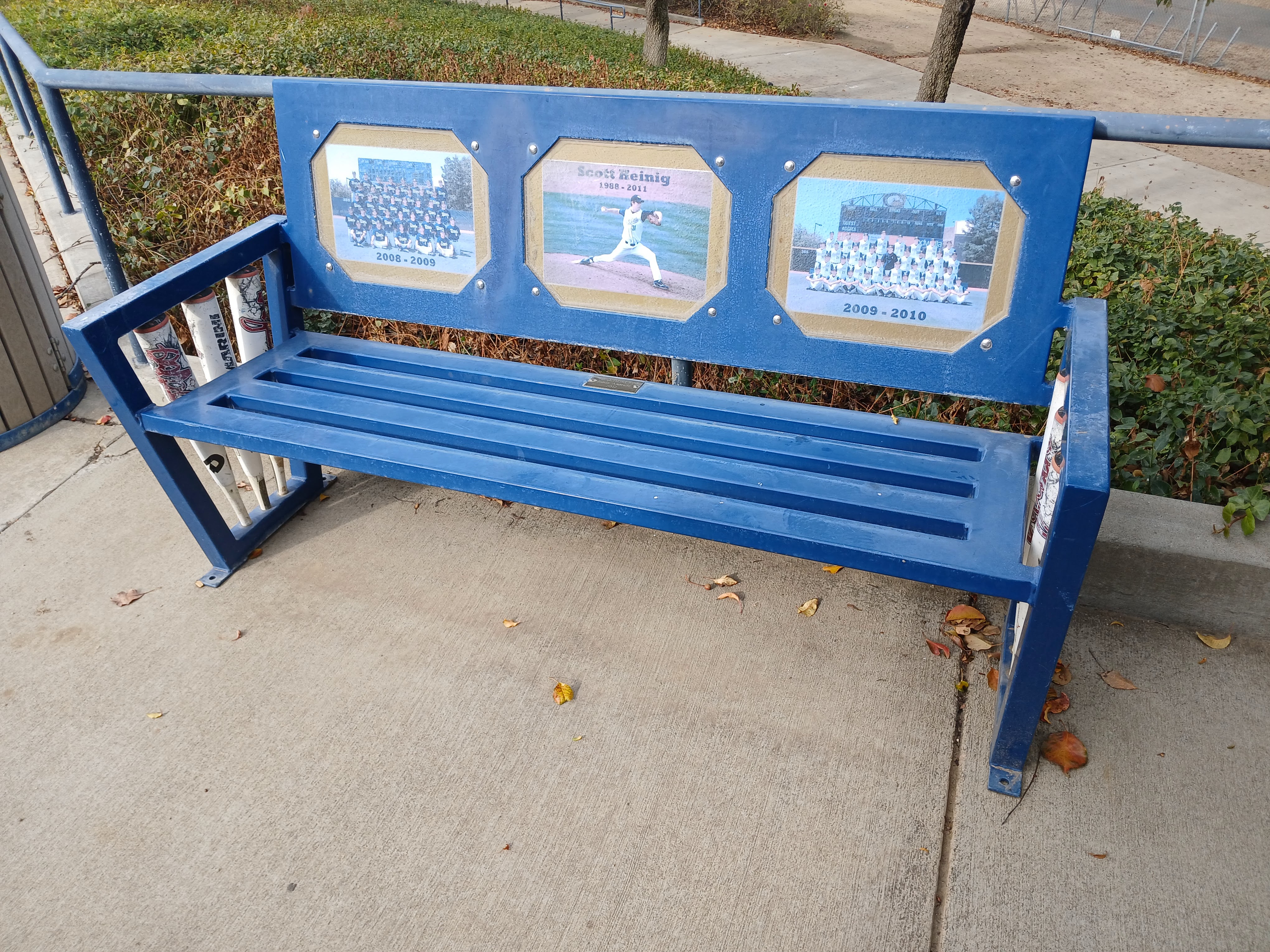 Coming into the Dobbins (James M. and Ann) Baseball Stadium, there is a tribute bench that really caught my eye. The player who is memorialized is former UC-Davis Aggie and Captain, Scott Heinig. According to a news report on the Aggie Captain, Heinig passed away at just 22, the result of a traumatic head injury. I loved the display with the bench, the bats, the team photos, and the individual photo of Heinig. Wow, 22 – way too young to pass away. Nice tribute.
