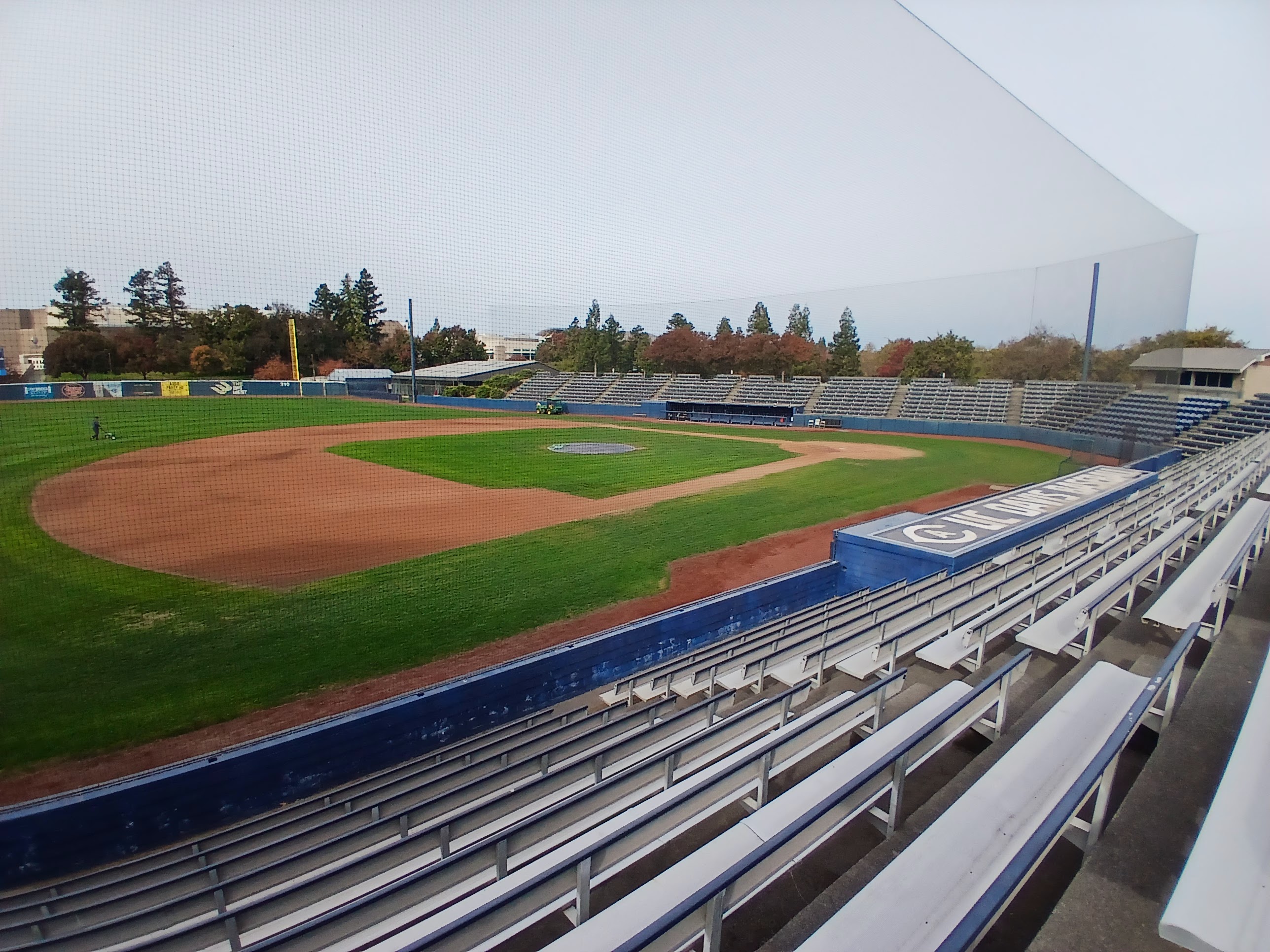 It was a really cool visit to the University of California at Davis and their Dobbins Baseball Stadium. The field look incredible, game ready for sure. Bleachers, grounds, dugouts looked clean and game ready. I really liked the Scott Heinig tribute bench. Weather was cooperating, I was kind of bummed the Aggies didn’t come out and scrimmage or something. It was a smooth ride up and a smoother ride back with little or no traffic. Overall, a very cool UC-Davis baseball experience.