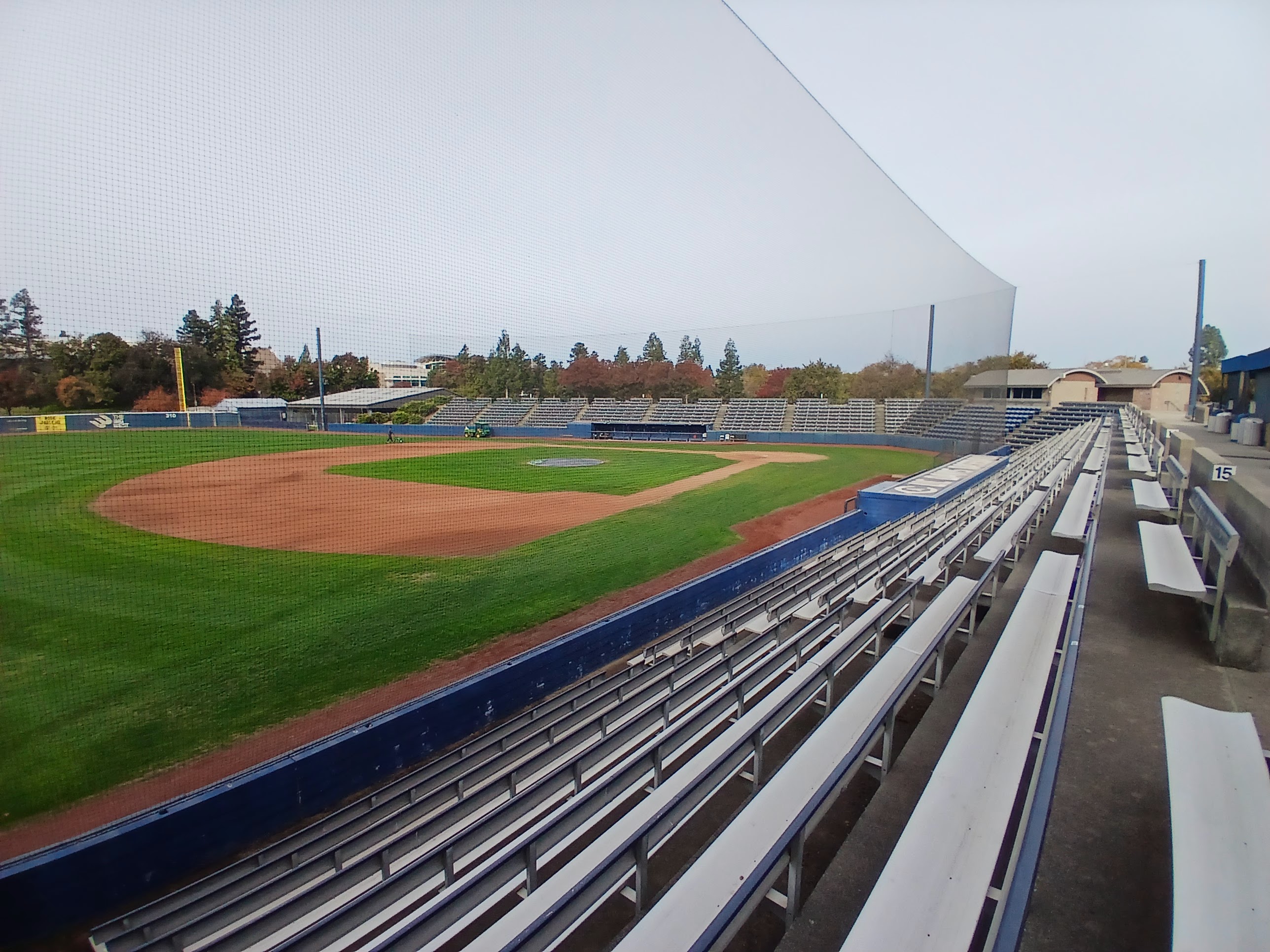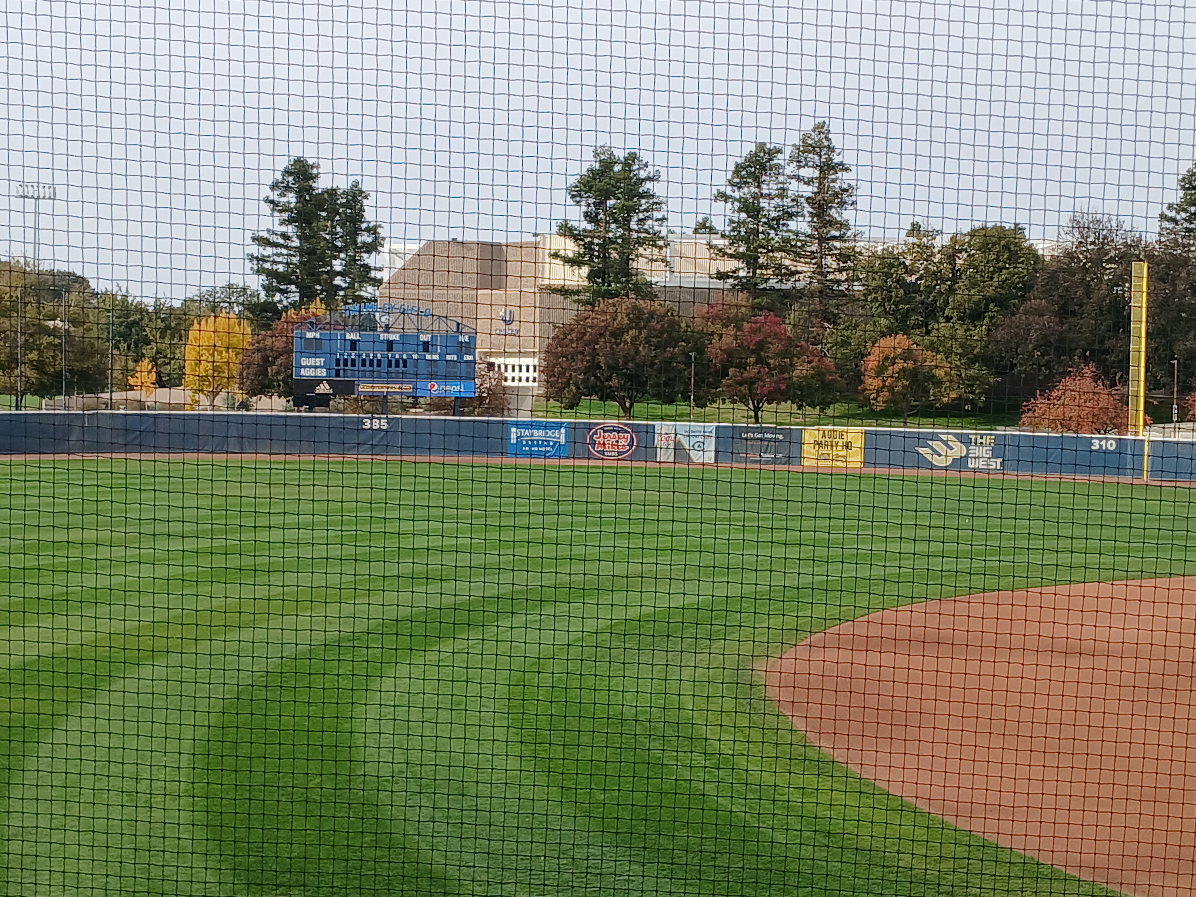 It was a bright, sunny morning and there were a number of grounds crew working on the grass. Go figure, landscaping the field in late November. The perks of California weather and climate, I suppose. The field looked amazing. I made my way from behind home plate, over to left field for a few views, then back to right field for some additional photos and views. The UC-Davis Aggies baseball team plays in the Big West Conference, Division 1, and I am sure packs the house on game days/weekends. Nice baseball stadium, very clean, great views of the field all over the place.
