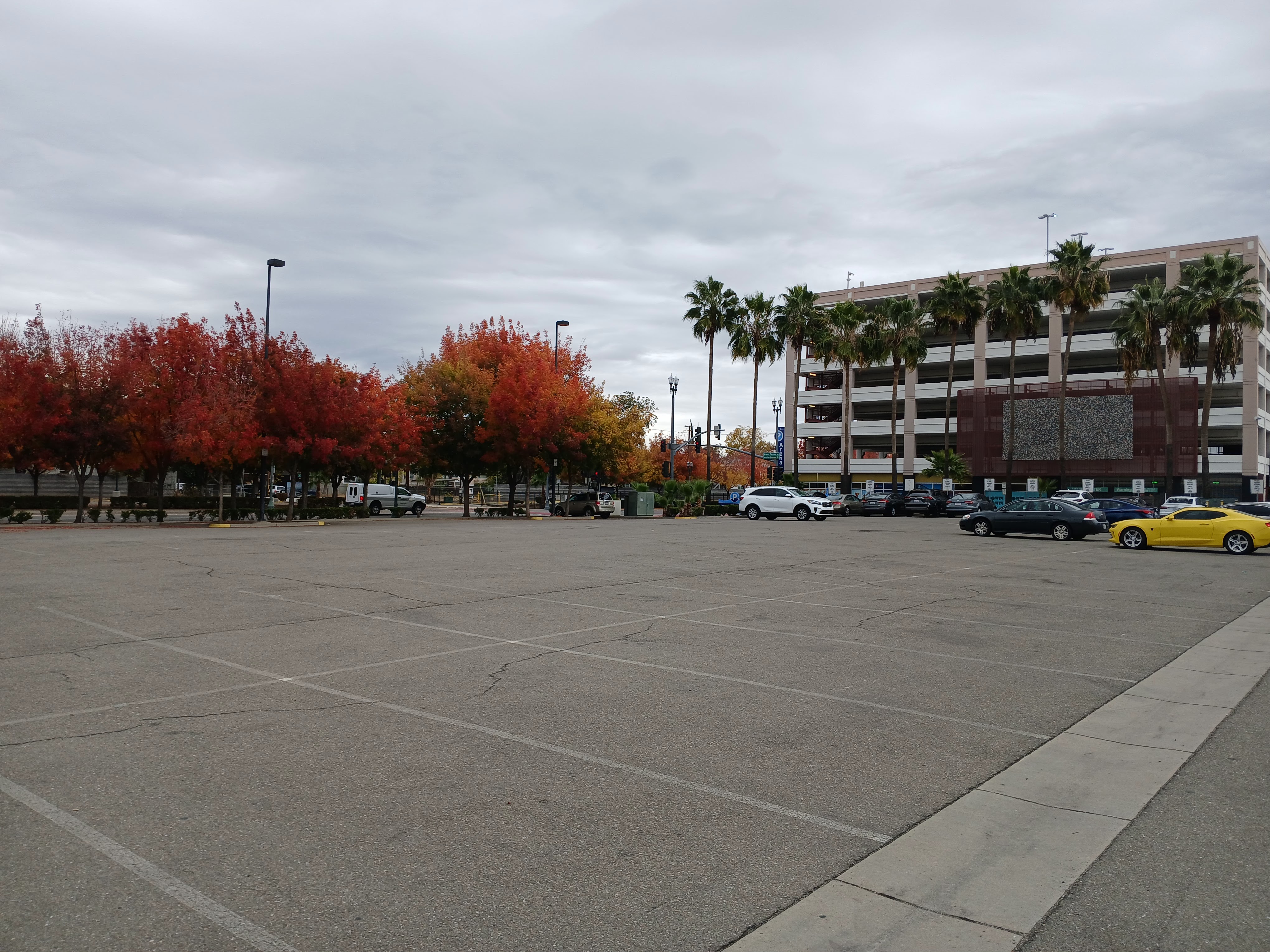 I thanked the pro shop attendant on my way out of the stadium area and took a few last photos of the park and surrounding area. How many have ever seen a photo like this on the east coast? Palm trees standing tall next to trees which have turned beautiful shades of yellow and orange for the fall? Pretty cool photo, only in California I suppose.