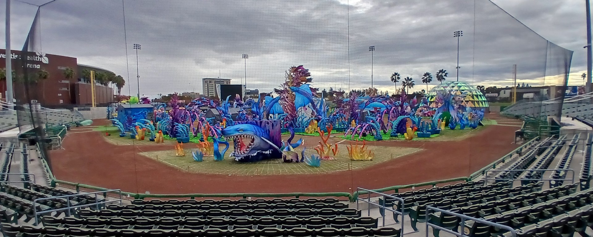 It was an awesome visit to Stockton’s Banner Island Ballpark, home of the Stockton Ports. And for the next few weeks, home of the Stockton Lantern Festival’s Magic Ocean. Honestly, whether it is concerts or bark in the park or dinner on the diamond or football games I love when minor league baseball stadiums multi-purpose in the offseason. It is a great way to keep fans going there as an entertainment destination and a nice stop gap between the end of one season and the beginning of another. It was an easy ride back and forth from Elk Grove and the weather cooperated once again. Overall, it was really cool Stockton Ports, Magic Ocean experience at Banner Island Ballpark.