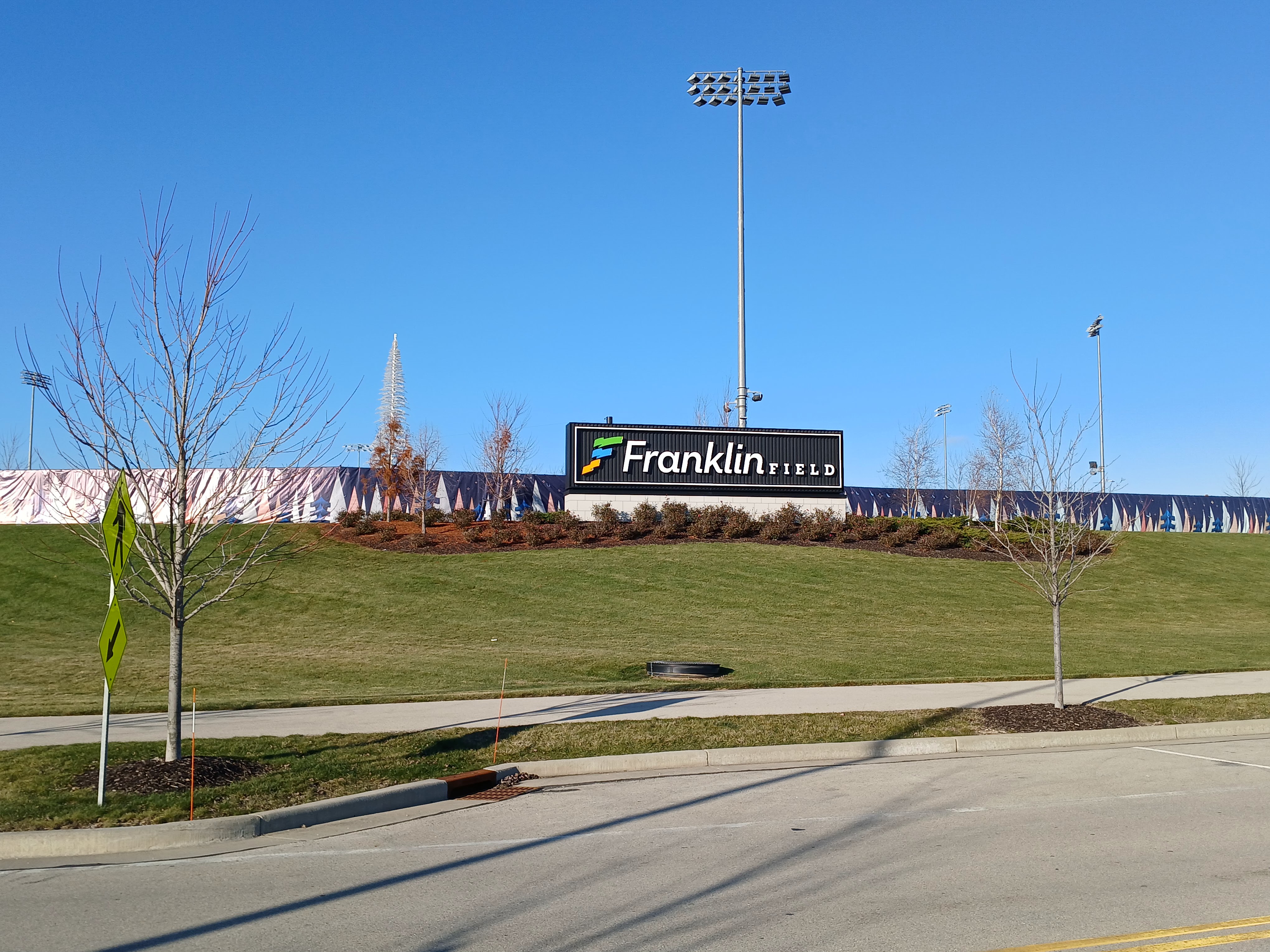 Driving up the long driveway to Franklin Field, I noticed a ton of activity in the complex. There was a golf range, possibly a Top Golf, on the far side of the parking lot. To my right, was a ski lodge looking area and a ski slope. And a beautiful baseball diamond located (seemingly) at the bottom of the slope. Without leaving my car, I was already blown away by this complex.