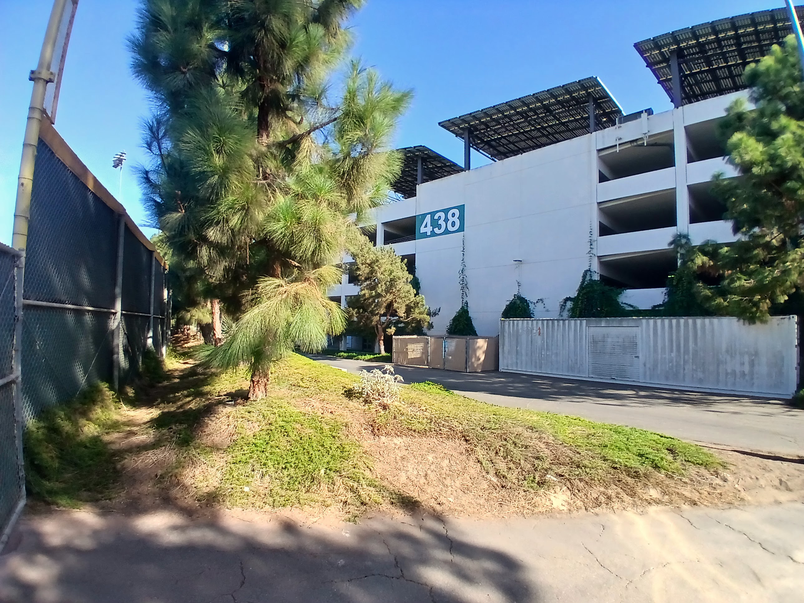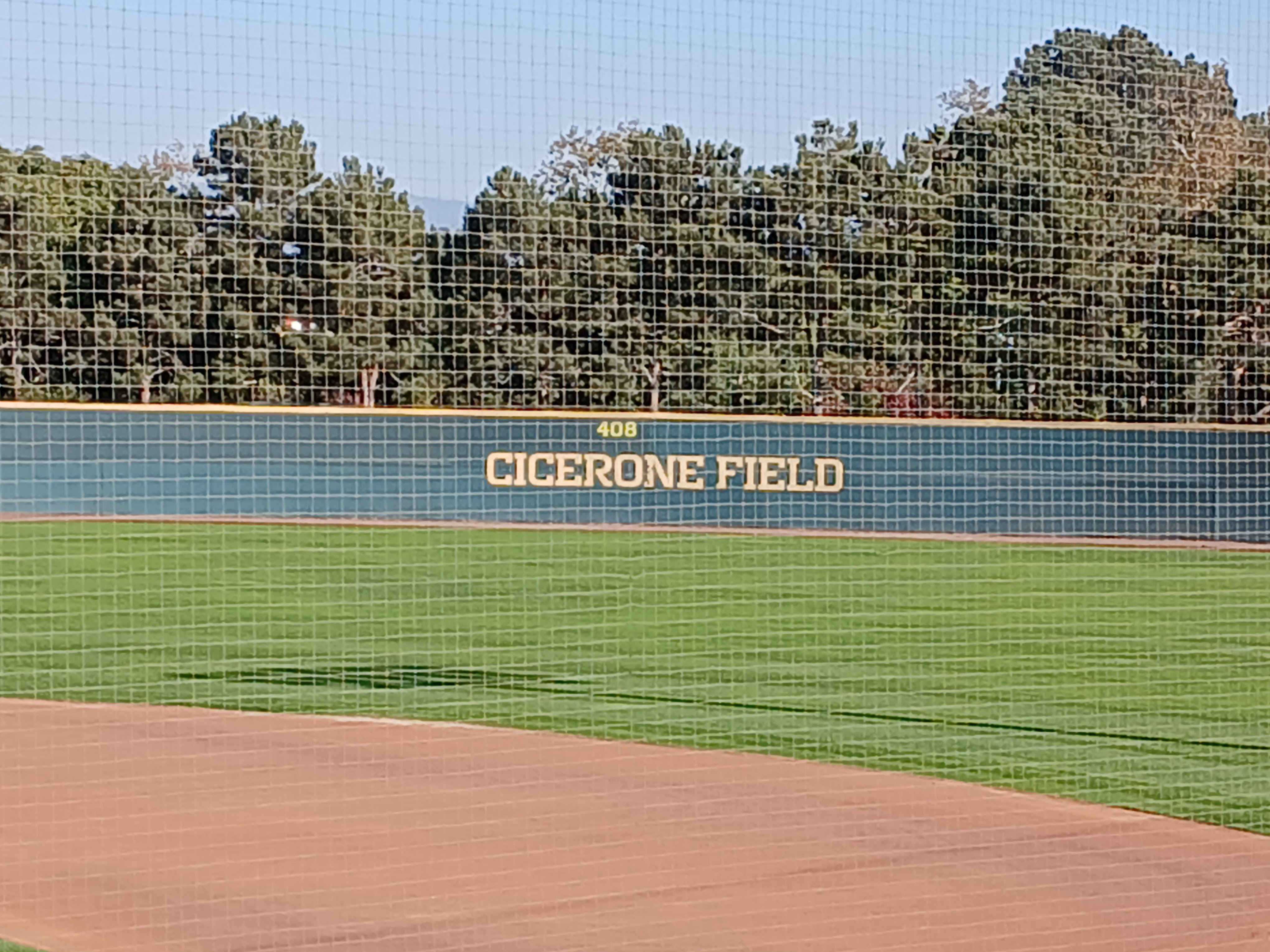 The University of California, Irvine Anteaters play at Cicerone Field there in Irvine, CA. Notable alumni from the program including Brady Anderson, Doug Linton, and Dylan Axelrod, according to Baseball Almanac. I didn’t see any statues or memorials around the front gate area, nor behind home plate or near the press box. The only tribute I could find was the number 19 circled on the right field padding. I took this photo of the field from right field, from the grassy area and realized two things…