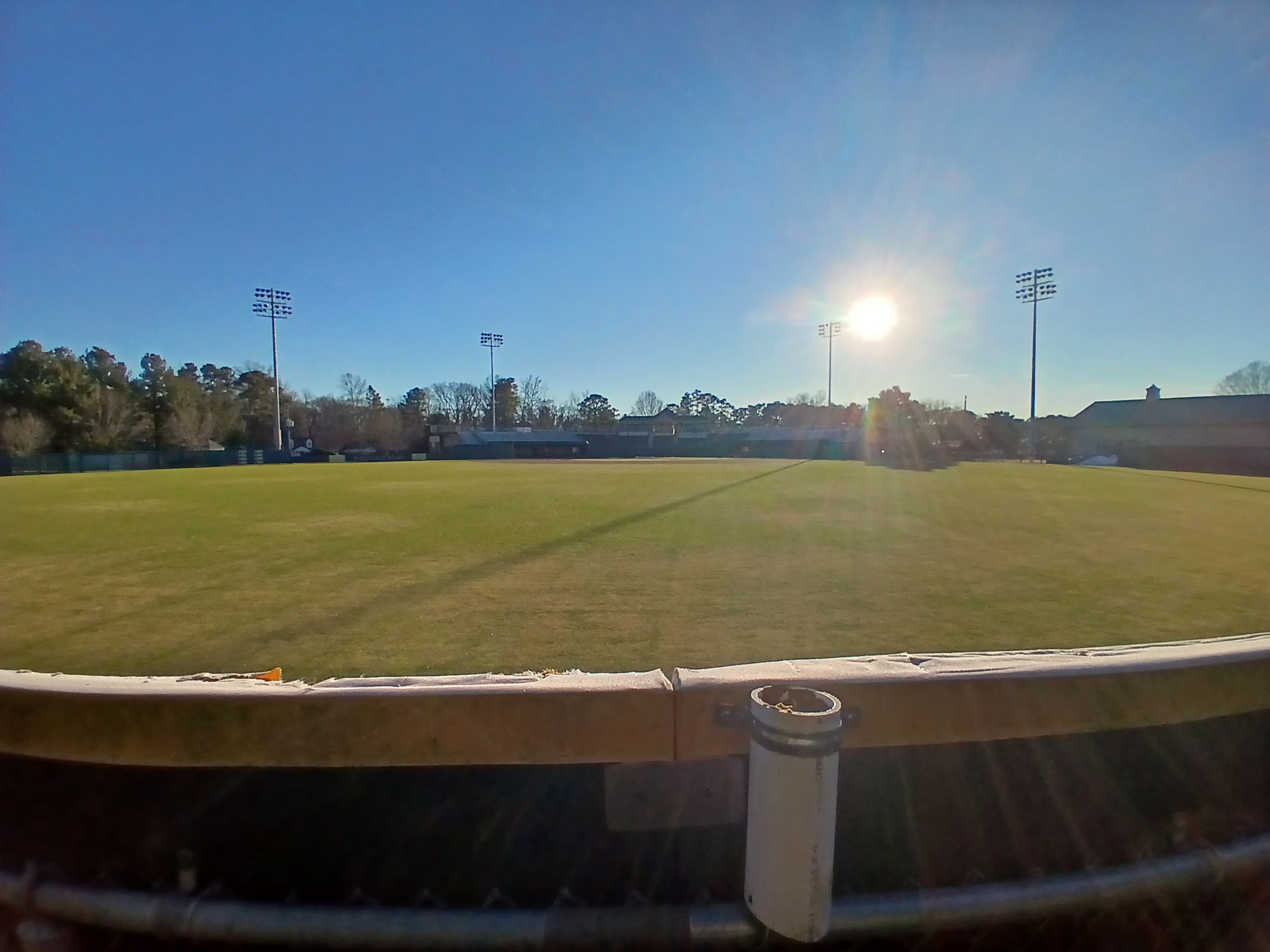 I parked in the lot behind the outfield fences, kept the car running, and headed over to Plumeri to see if I could catch some views of the field and stadium. With William & Mary students still on holiday break, I sort of predicted that the stadium would be locked up. And I was right. There were some views of the field from various angles and I managed to walk around the perimeter of the locked park to get some photos.
