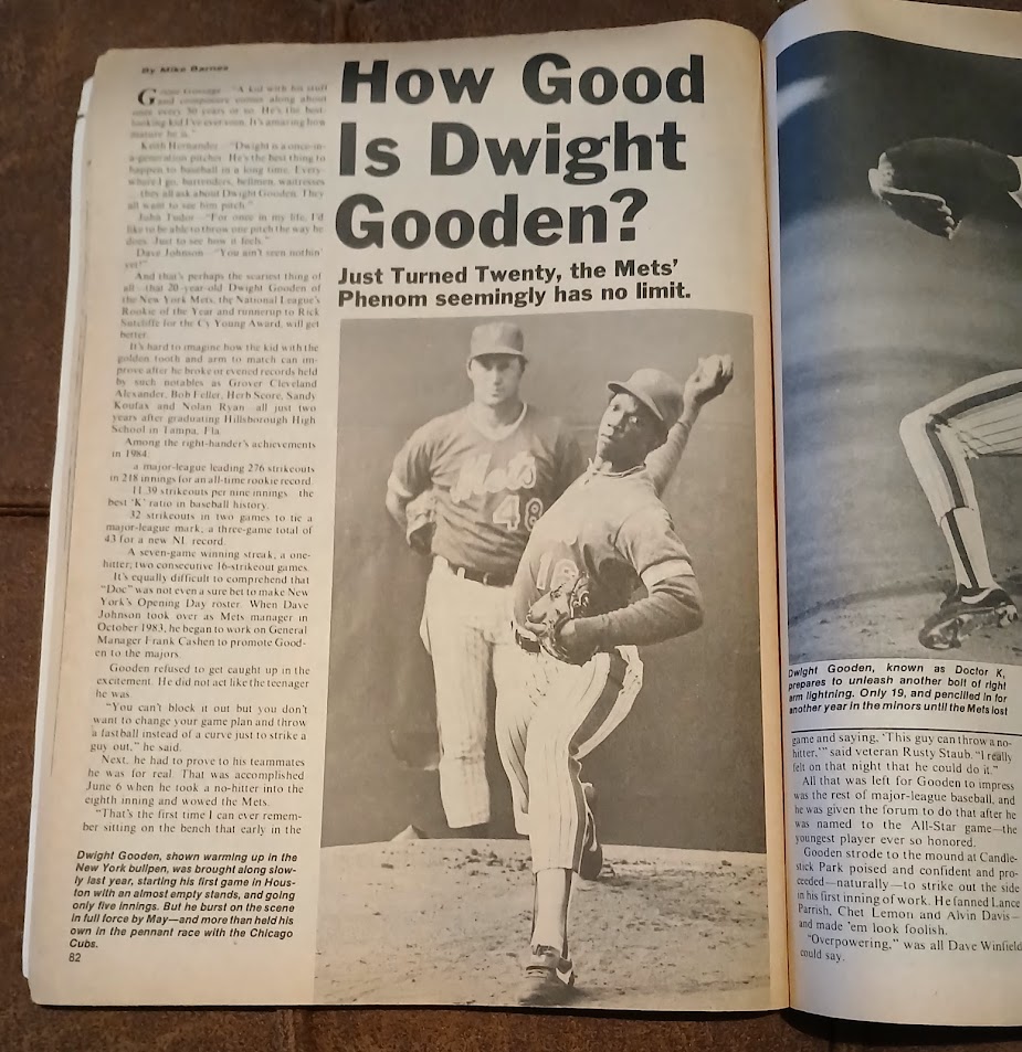 Rookie of the Year at 19, then Cy Young at 20 years old? Youngest ever Cy Young Award winner. Triple Crown of pitching like few can even imagine, yours truly included. In 1985, Gooden won 24 games, struck out 268 batters, and had an ERA of 1.53. Are you kidding me? 16 complete games to pile on about how 1985 may have been the best year a pitcher has ever had on a professional baseball mound. 4th in MVP voting, he also added 21 hits and a home run at the plate (Pitchers batted back then). 1985 was the year everyone gravitated to their radios, TVS, and if you were lucky enough local ballparks to watch a historic Dwight Gooden pitch for the NY Mets. What a talent.