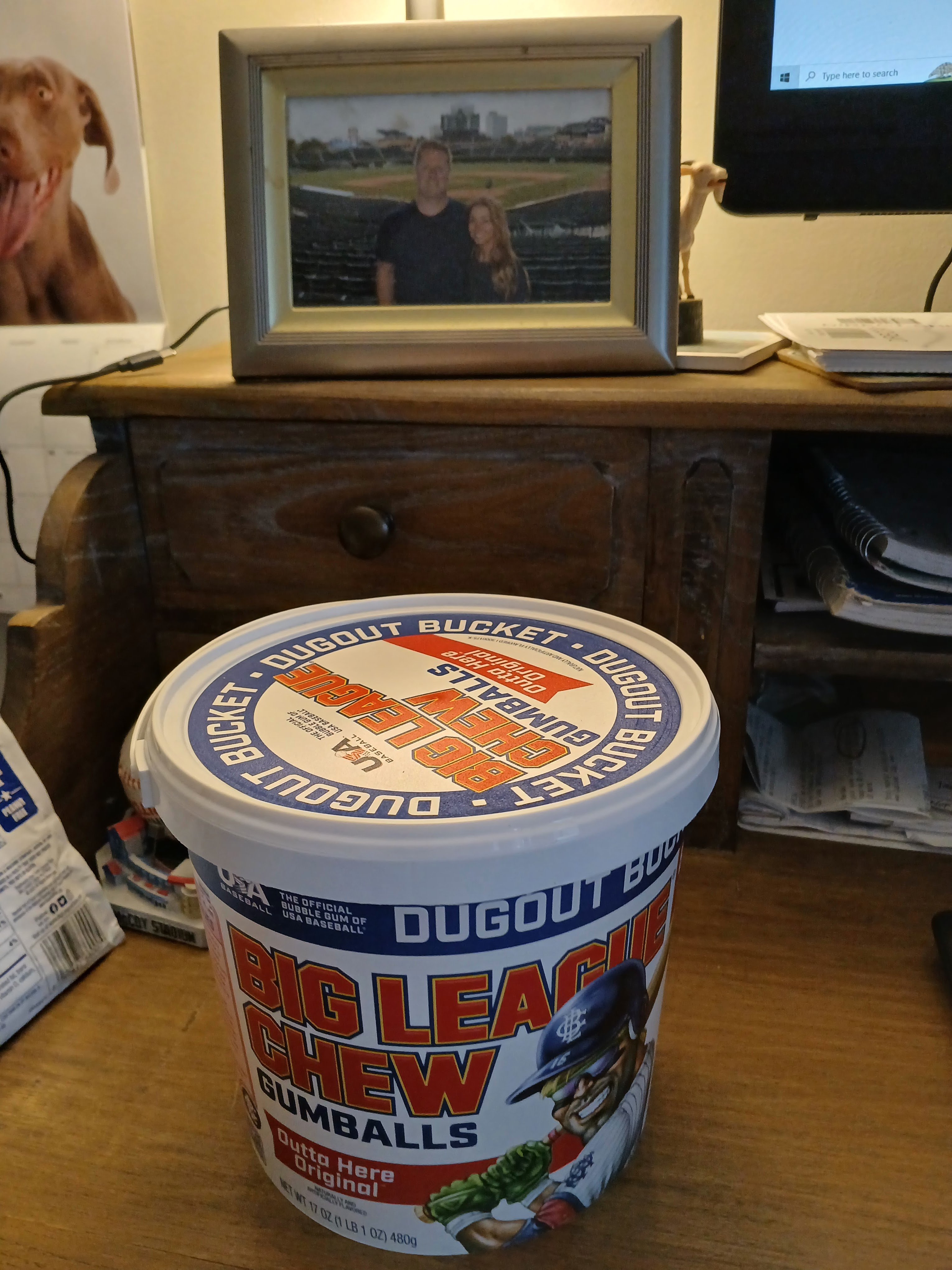 Nothing says I love you on Valentine’s Day, Opening Day, Christmas Day, heck any day like a pack of Big League Chew® Bubble Gum and an 80 count bucket of delicious gumballs. Yes, it is official, I know I am loved. I mean name a baseball player, coach, parent, fan that has not heard of or used Big League Chew® products. I can’t imagine not having BLC in my baseball lifetime. Many a game, many a doubleheader were saved by the delicious bubble gum inside those buckets and in those pouches. To my wife, who knows me so well, Rachel, thank you for this amazing gift and I love you too.