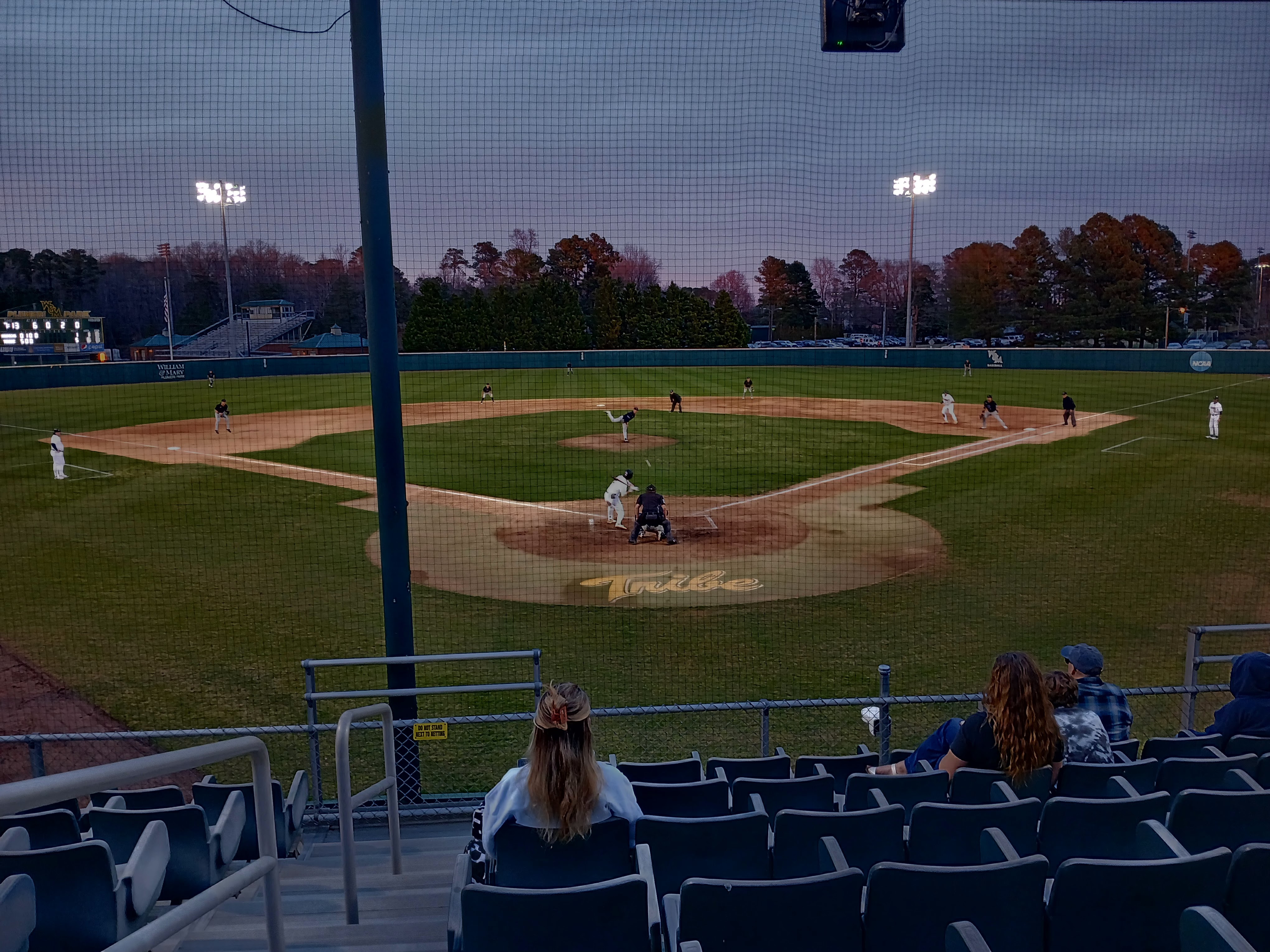 It was another fantastic afternoon in Williamsburg. I love that this historic town with so much to offer is so close to Virginia Beach. And with the wooden backdrop and historic sites and Wickford, RI-like feeling, it is such a different kind of day in Williamsburg then the typical beach, beachfront, resort life of VA Beach. William and Mary’s Plumeri Park is really growing on me, I love going there to see live baseball. This particular game was cool because of the closeness of the two D1 baseball schools – Norfolk (ODU) is about 30 to 40 minutes to Williamsburg (W&M). Night games are my favorite and preferred time to watch a game, so that made the game even more special. It was so awesome chatting with the William & Mary Baseball Captain, 1961, with the famous cousin (Dick Vitale). If I figure out his name, I’ll let you know asap. Overall, it was another spectacular Williamsburg baseball experience watching my first night game of 2025, featuring William & Mary vs. Old Dominion University.