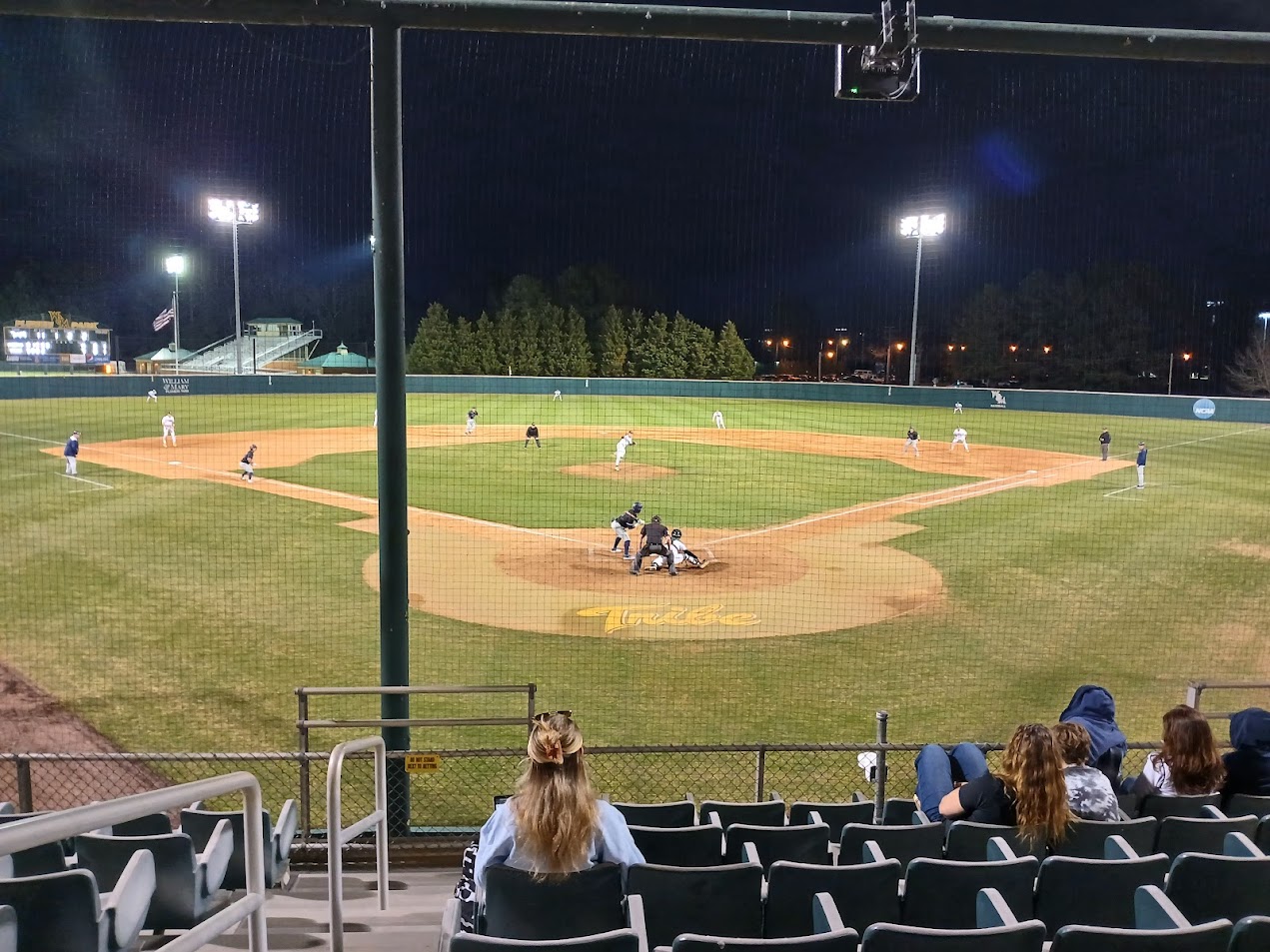 Now for the more exciting first of my 2025 baseball experience season – my first night game. William and Mary University’s Plumeri Park is quickly becoming one of my favorite spots to watch a game. It is easy to get to, easy to park at, it has plenty of character, and has great seating throughout the entire park. Yesterday’s matchup featured the W & M Tribe vs their cross HRBT rivals the Old Dominion University (based in Norfolk, VA) Monarchs. The Monarchs are on a very interesting baseball journey themselves in 2025 – they officially have no home field. Bud Metheny Stadium, their baseball park on campus, is being reconstructed and is no where near baseball ready. So, the Monarchs have been road warriors for 2025, traveling from Atlanta to Charlotte to Alabama and Mississippi just to name a few spots. With Plumeri Park being just about an hour ride from Norfolk, at least ODU family, friends, students, and fans didn’t have far to travel for last night’s contest.