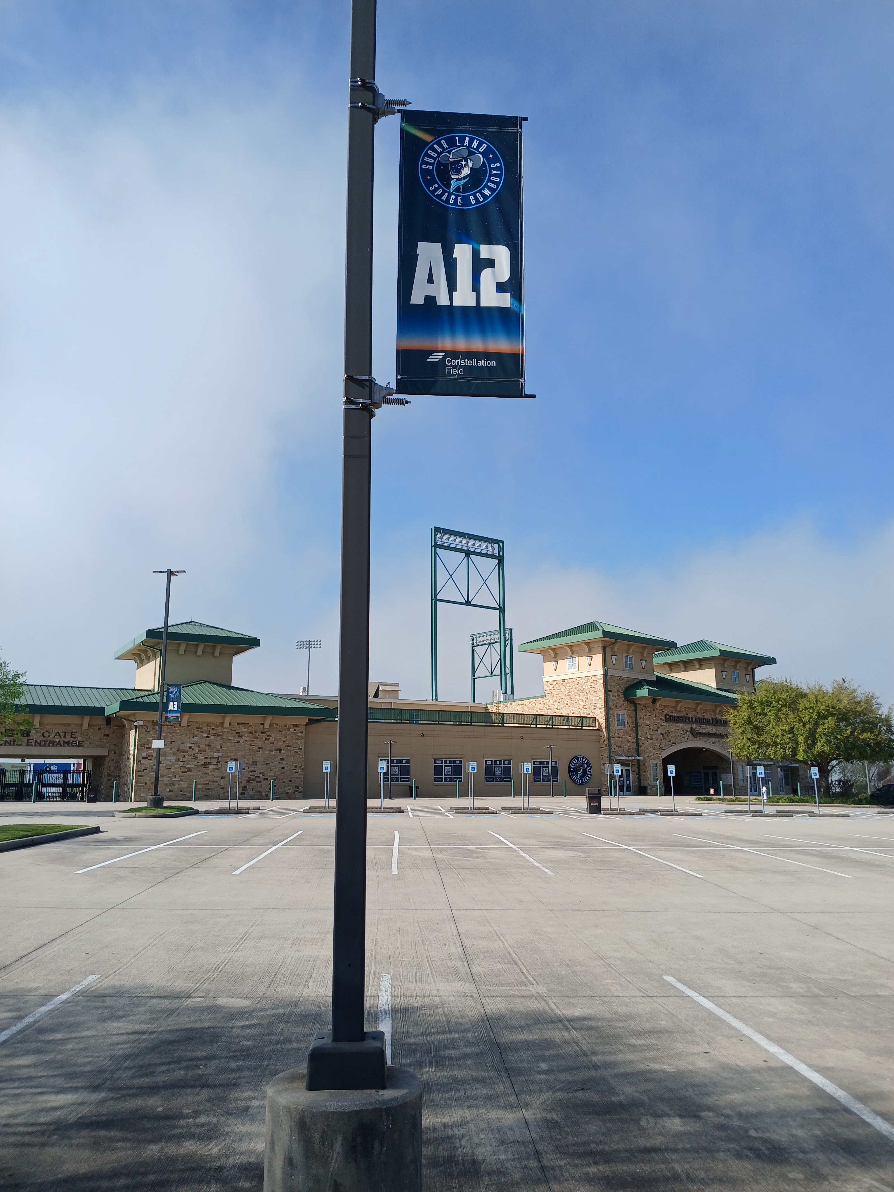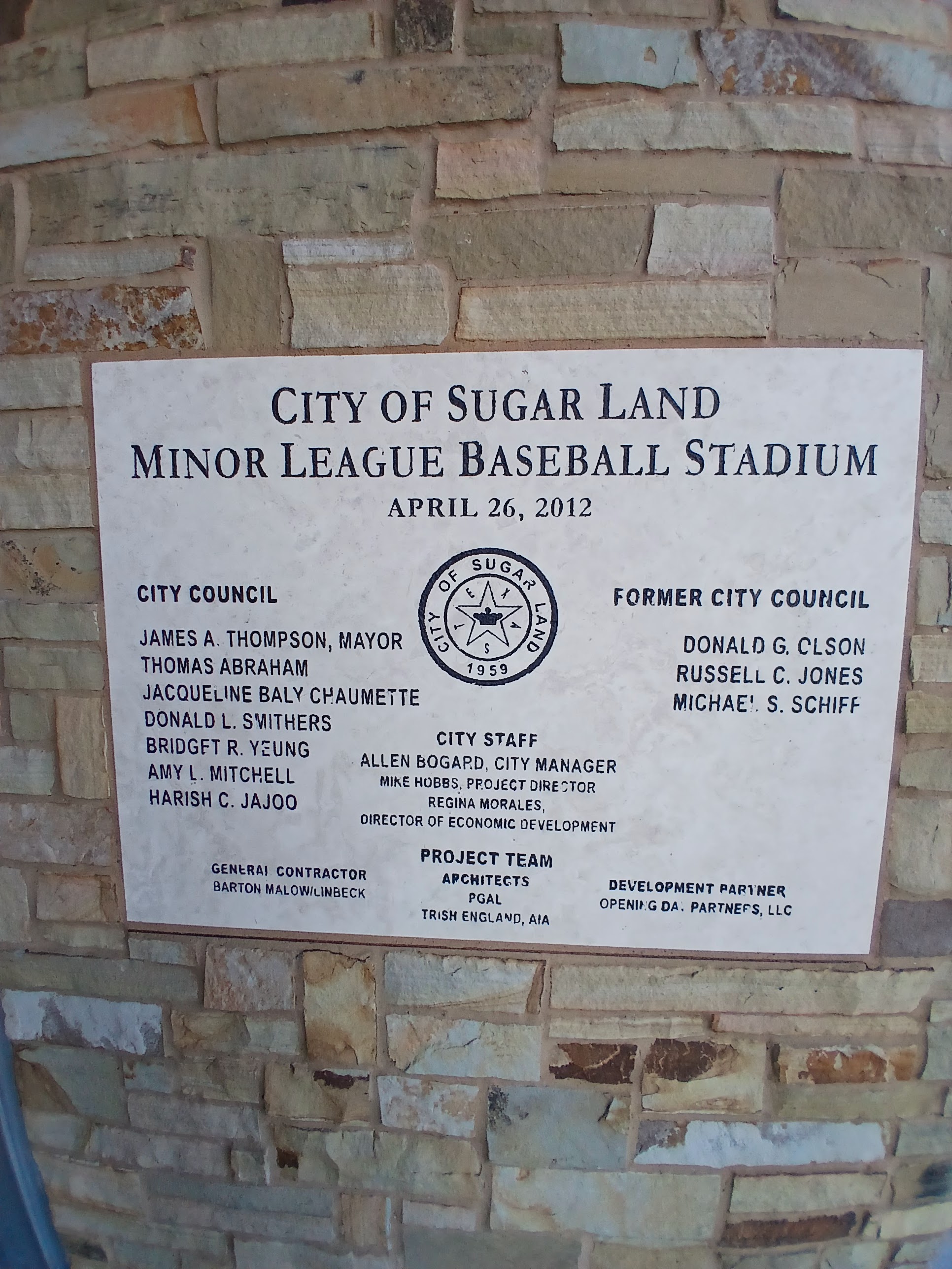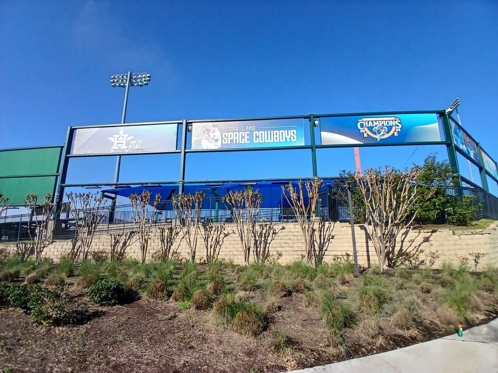 Last week on my business trip to Houston for ABF Freight, I had some personal time in the morning to check out local baseball experiences. Having visited Rice University’s Reckling Park on Sunday, I mapped out a trip down to Sugar Land, Texas to visit the Sugar Land Space Cowboys and Constellation Field. With the windows down, tunes on the radio, a hearty breakfast digested, I took the 30 minute (or so) ride southwest from Houston on Tuesday morning. Here is what I found when I arrived in Sugar Land.