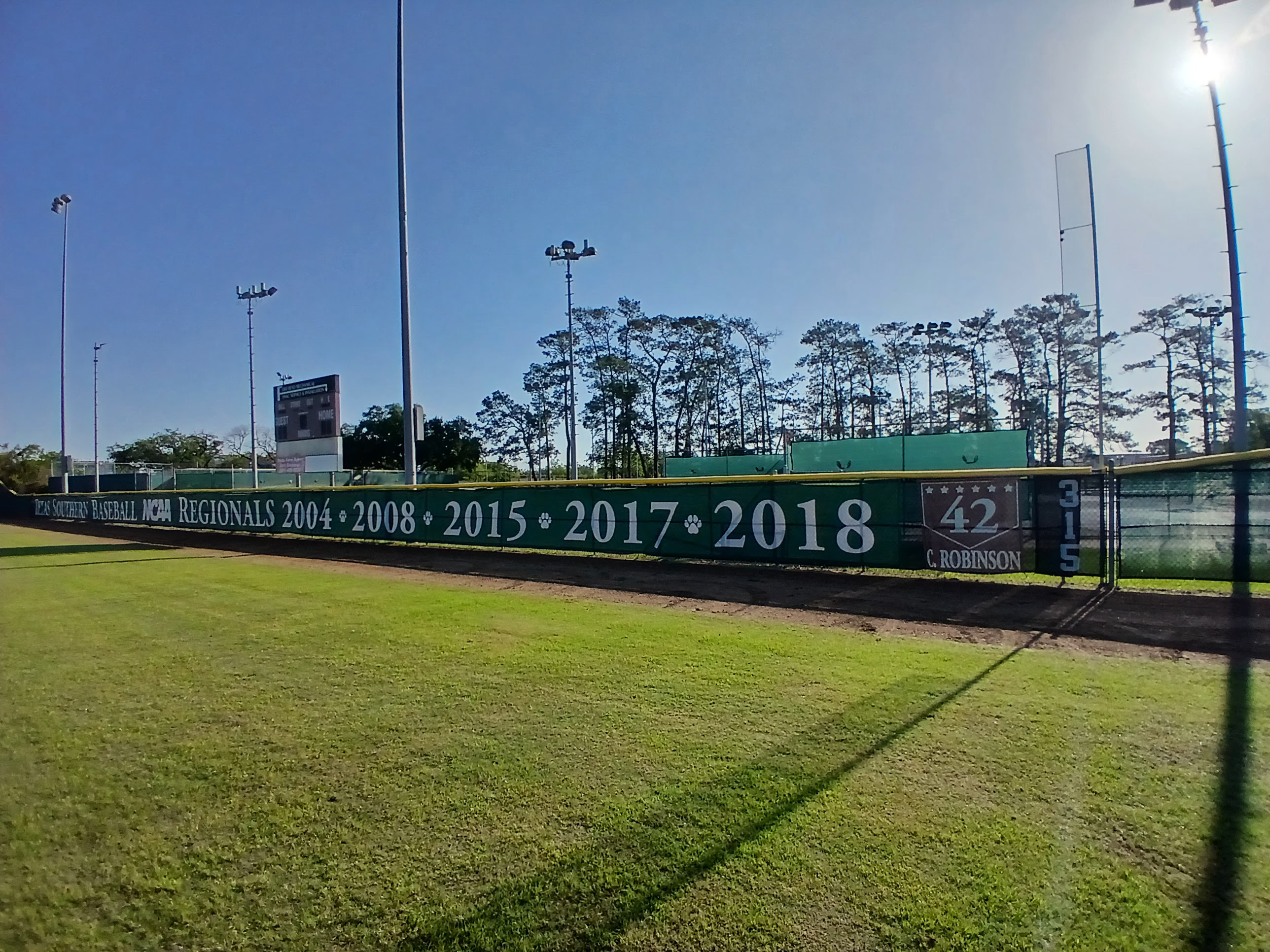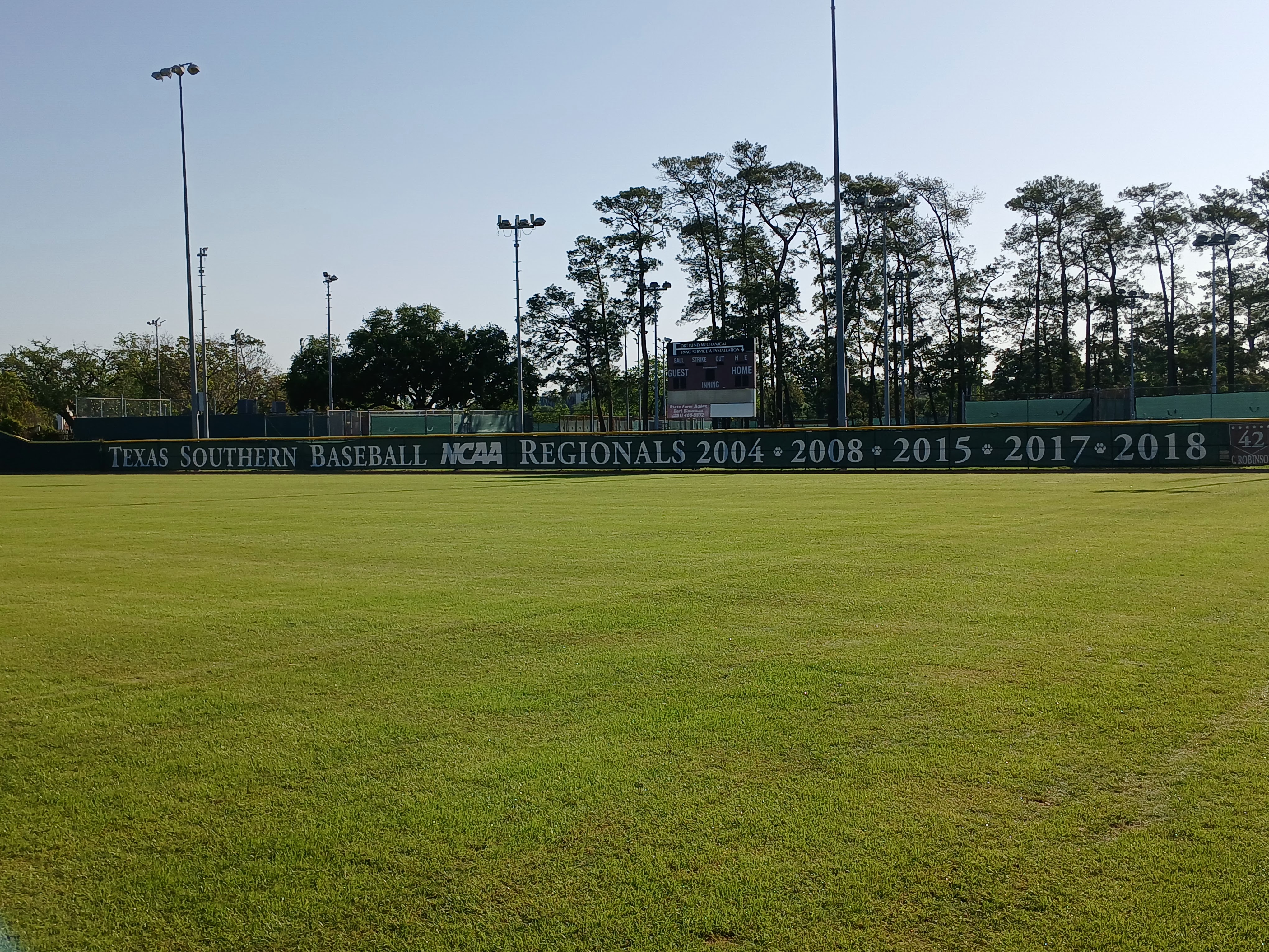 If you look closely, you will see Jackie Robinson’s number 42 retired on a banner next to the Texas Southern Tigers NCAA Regional appearance years. Yesterday, 04/15 was Jackie Robinson Day in Major League Baseball where every player of every MLB team gets the honor of wearing number 42 on the back of their jersey. The number 42 has been an MLB retired jersey for some time now and every year players and managers get to wear it for one day and one day only. Pretty cool to see that Texas Southern is honoring the legacy of Jackie Robinson by displaying his number there at their home baseball field.