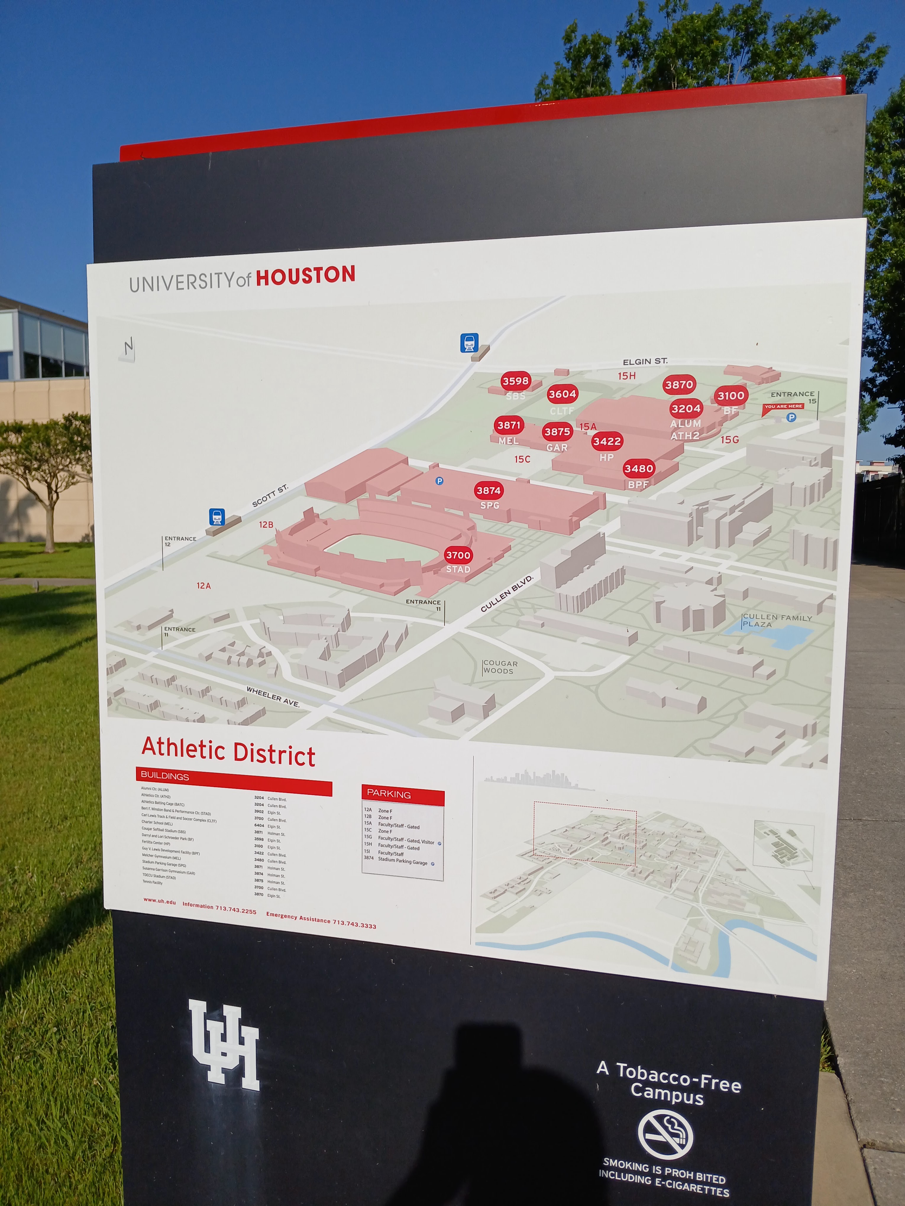 Using this handy dandy street map, I quickly located the baseball field and complex and headed over towards it. I wasn’t expecting the gates to be open nor any access to the field at that point, so I just took photos of what I could from the sidewalk outside the park. I was able to read a few of the plaques notating MLB players who called U of Houston home at one point in their baseball journey. And a few MVP and All-American player plaques were really cool to read as well.