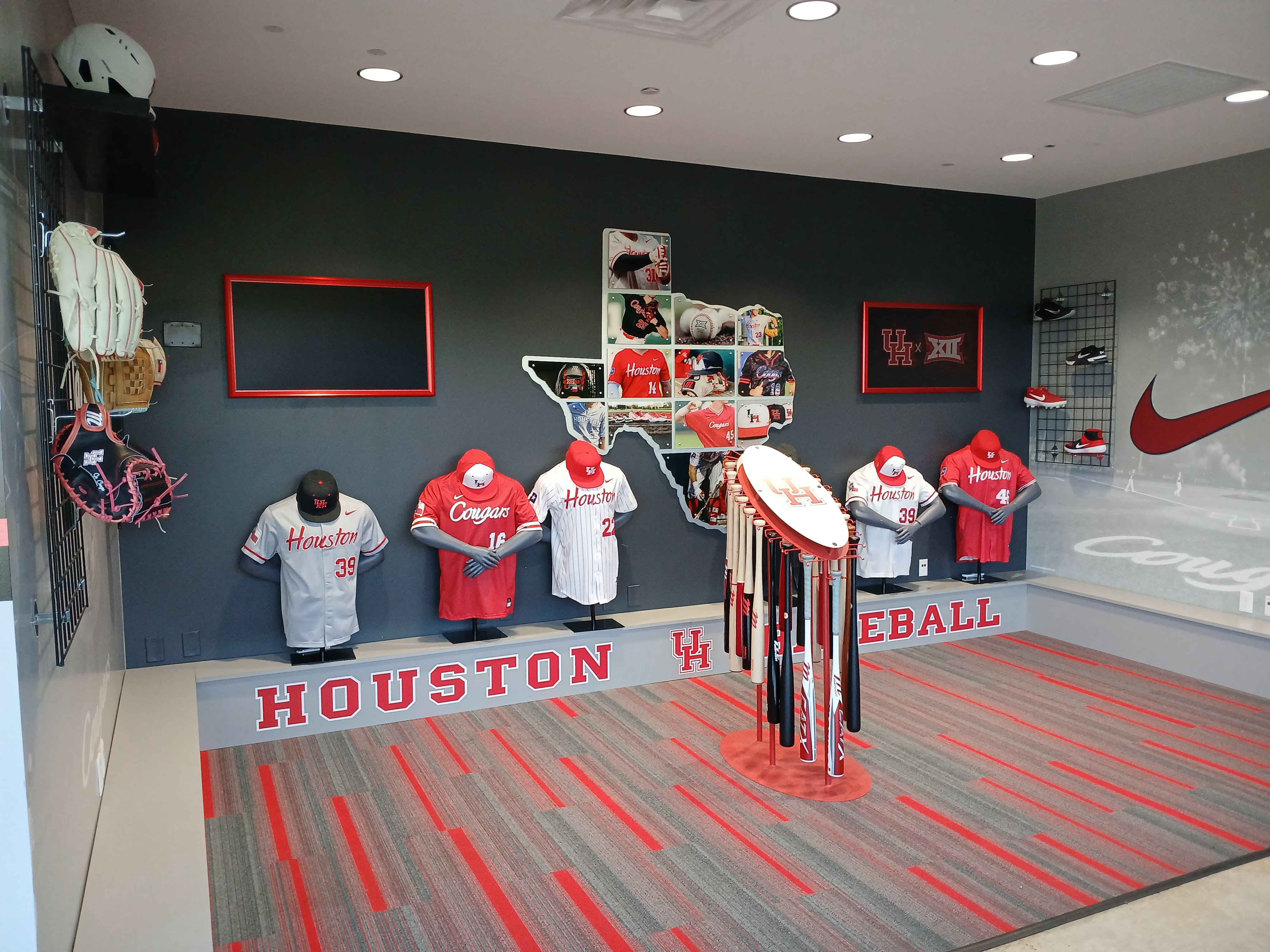 The University of Houston Cougars play at Darryl & Lori Schroeder Park to be exact. The baseball field sits in a row of stadiums properly labeled (via a very useful street map) as the Athletic District. All displayed in the signature Red and White school colors of the University of Houston. Included in this District are the softball stadium, football stadium, baseball complex, tennis facility, the Carl Lewis Track & Field and Soccer Complex – I could go on and on with the athletic facilities located in this spot. Plus a huge Alumni Hall, tons of cool banners and signage, what a great first impression of the school’s athletic prowess.