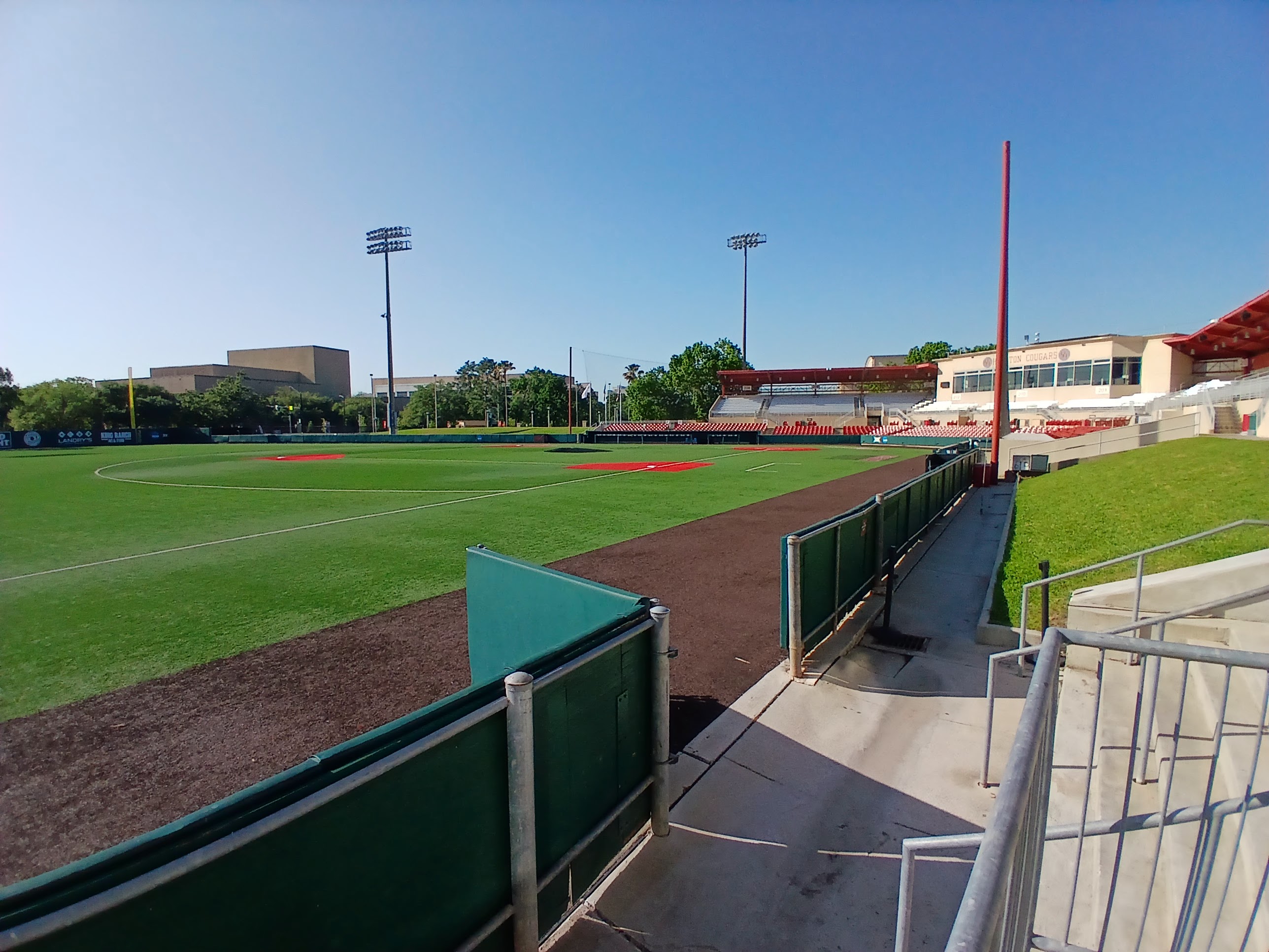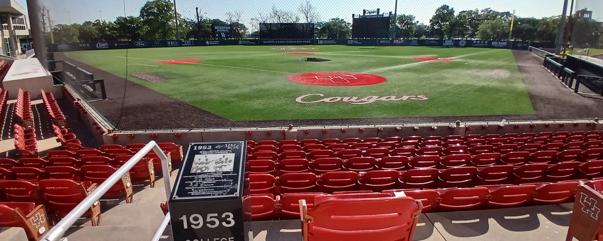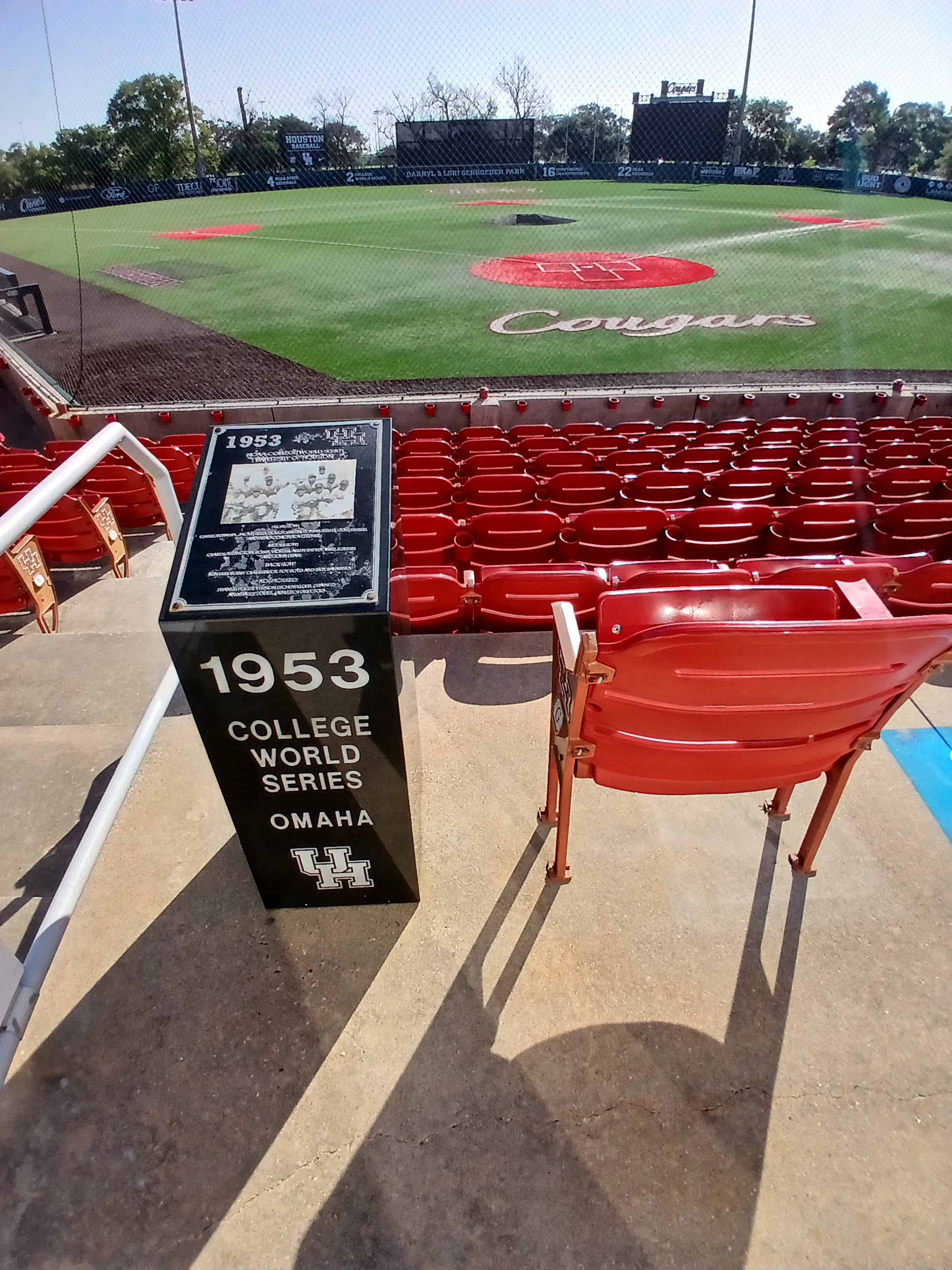 Last Wednesday, before going into work for ABF Freight, I found two really cool Houston baseball experiences to check out. The first was MacGregor Park, home of the Texas Southern University Tigers baseball team. The second was just a few lefts and rights from MacGregor Park – the University of Houston. After navigating through the busy campus streets of U of H, I found a public parking lot across from the Cougars Baseball Field and crossed the street to check out what I could find about the field and its history.